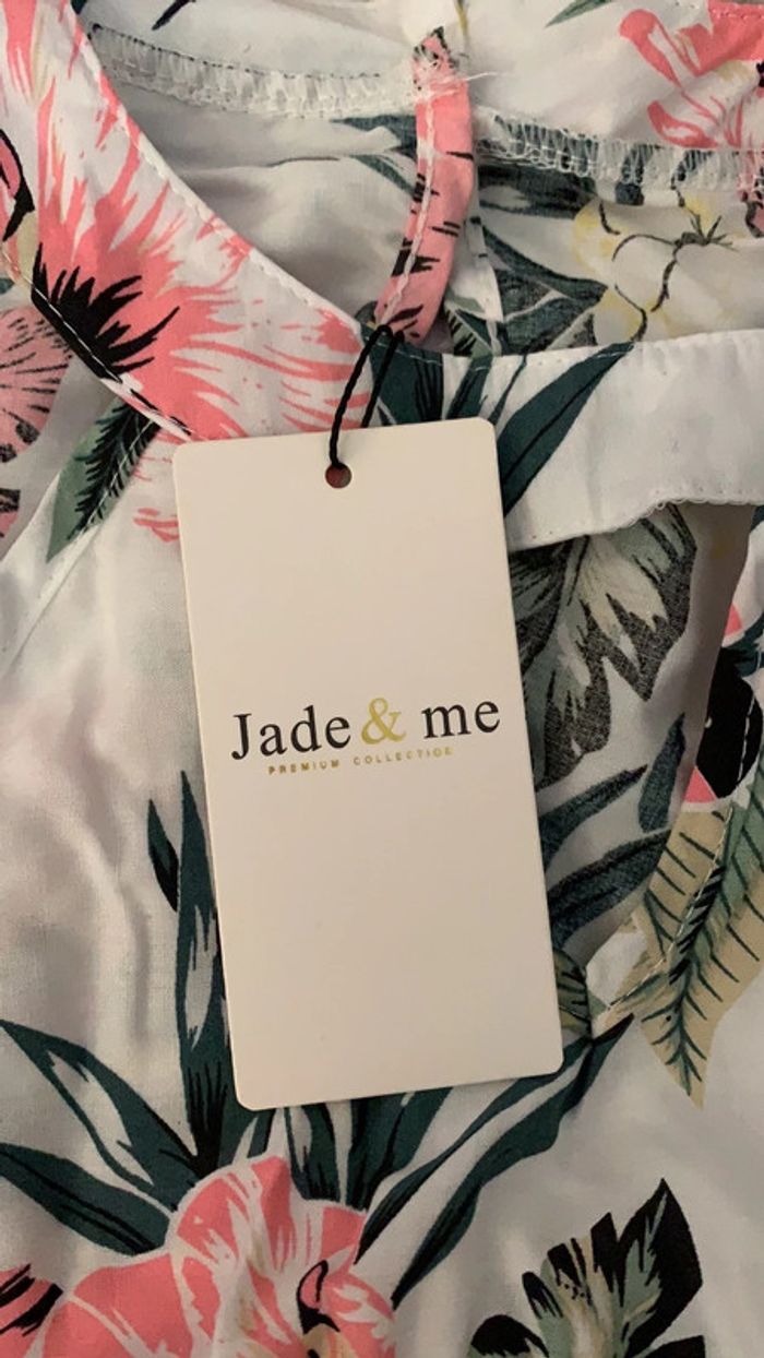haut sans manches taille S marque Jade&me neuf etiqueté 100% viscose fermeture par un bouton dans le cou.