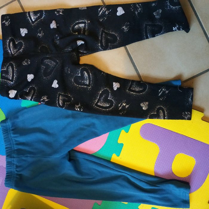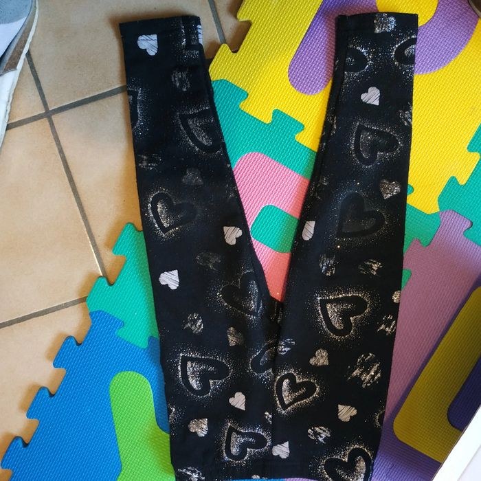 Lot de deux pantalons style legging 4 ans Je ne sais plus la marque État satisfaisant Le noir a paillettes bouloche un peu a certains endroits