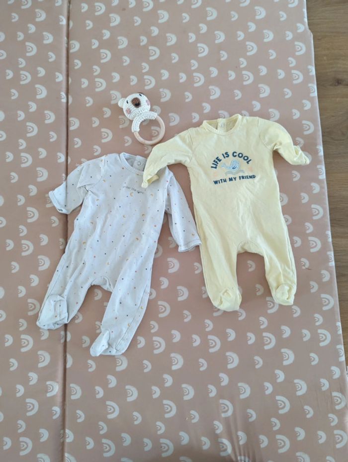 Lot de 2 pyjamas grenouillères cotons bio 3 mois - photo numéro 1