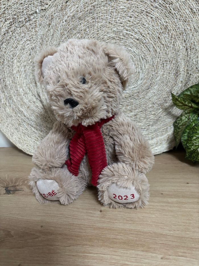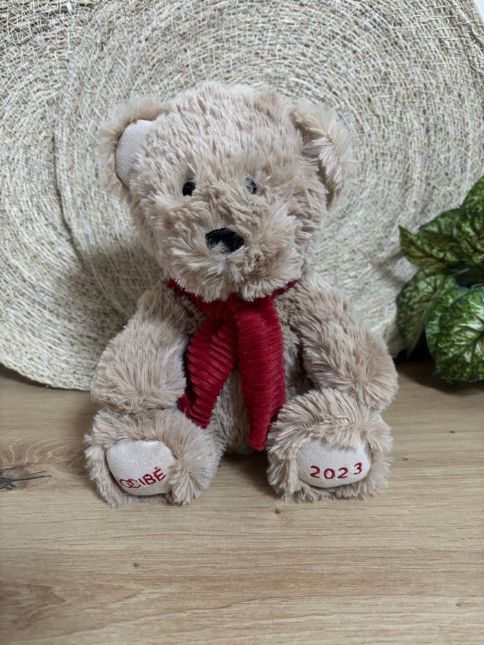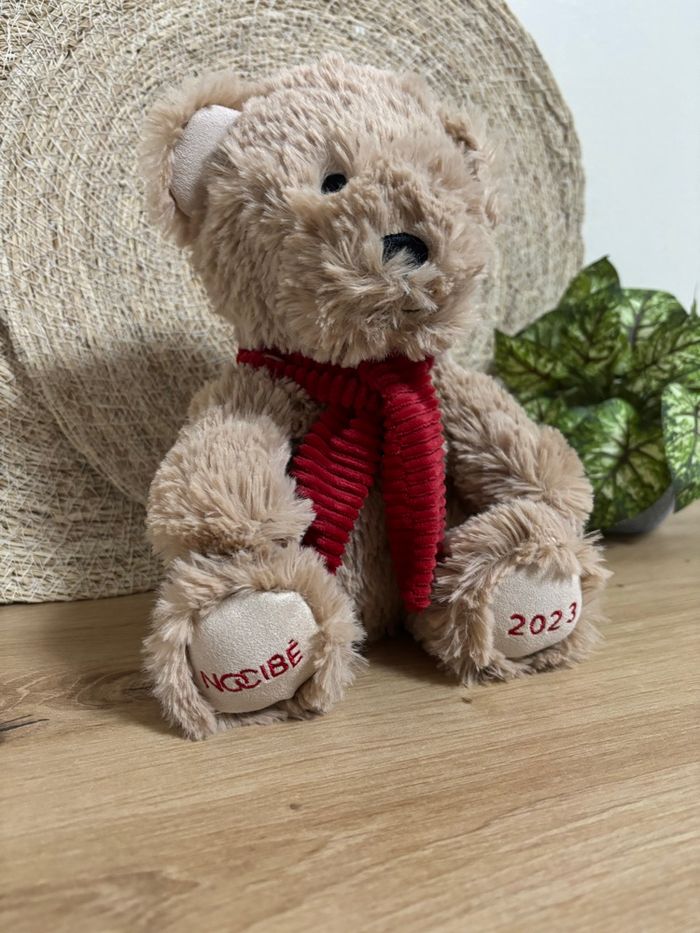 Doudou peluche ours marron écharpe rouge nocibe 2023