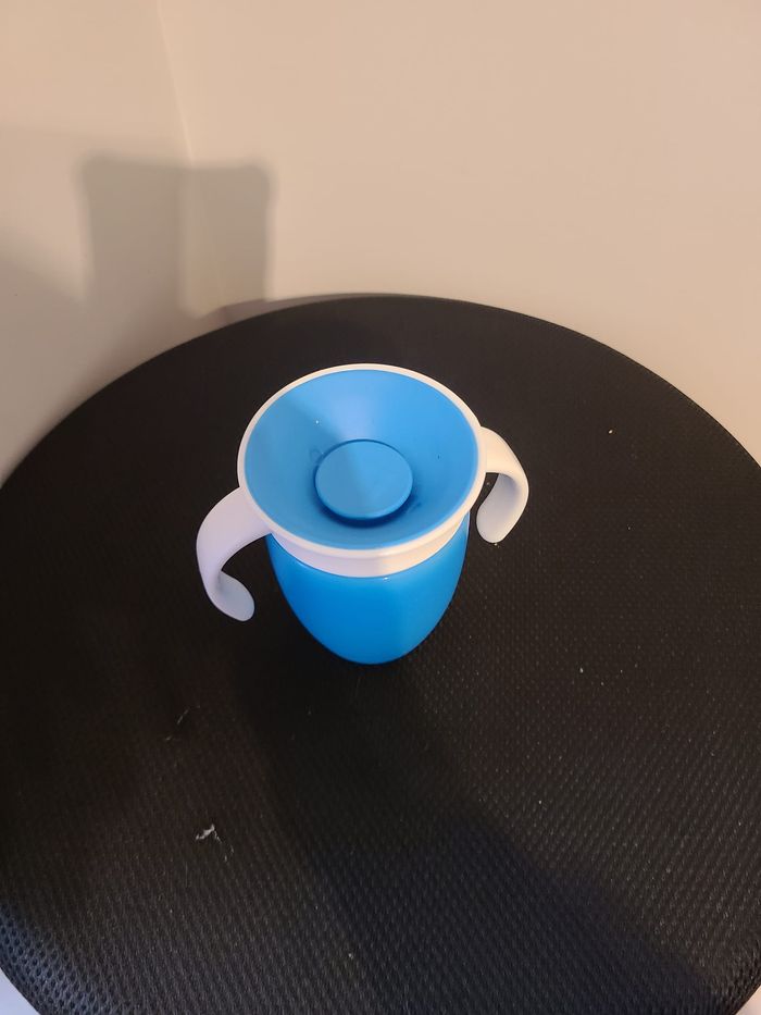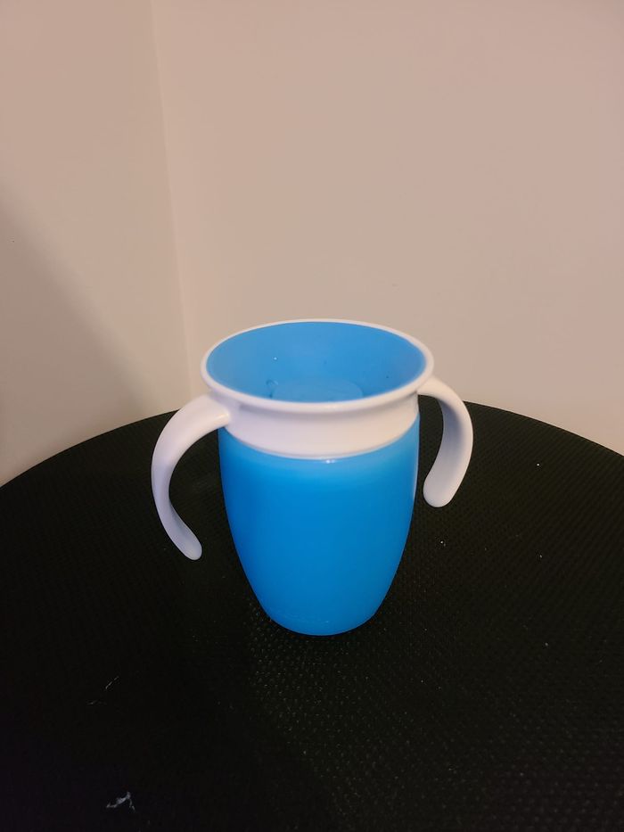 Tasse d'Apprentissage,cup entraîneur degré 360, bébé tasse imperméable à l'eau, la bouteille de lait étanche,avec poignée,bleu