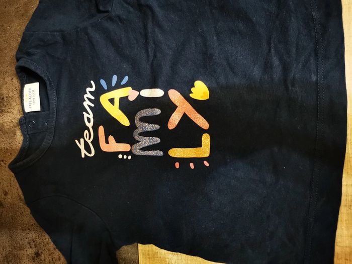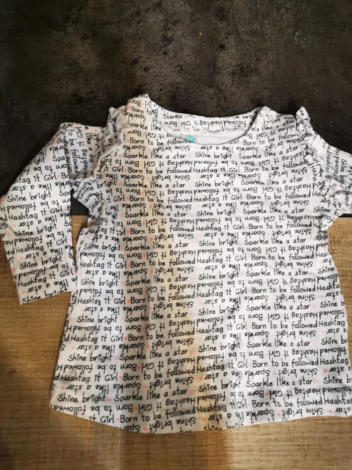 Lot de 15 tee shirt manches longues. Bon état général. Pas de trou les pressions sont ok 2 petites taches sur les 2 derniers. Le love à l'avant c'est léger. Cf photo. Le only you tout en bas à l'avant au niveau de la couture. Cf photo. Tous les autres sont ok. Diverses marques : kiabi, tape à l'œil, moussaillon, Disney.... #or_et_litfille12mois