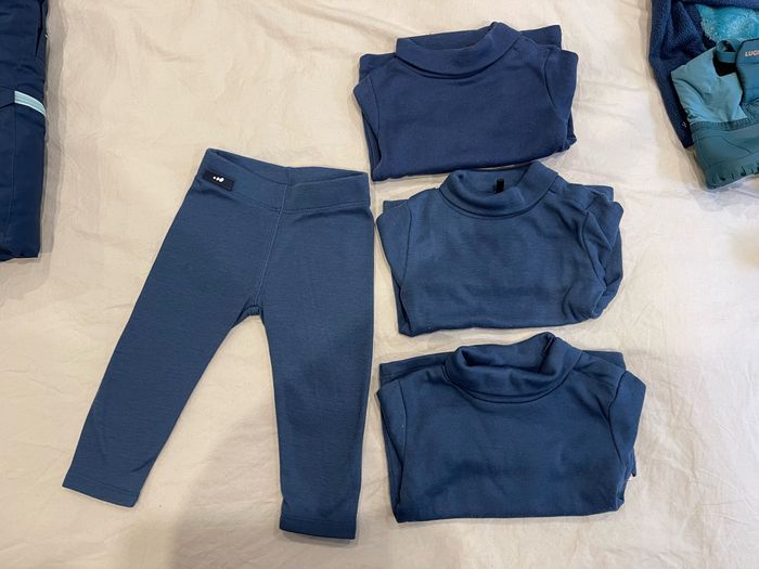 Gros lot pour le ski wedze et lugik Taille 12 mois En très bon état Combinaison recousu au niveau des fesses ( voir photo 3) 1 combinaison ski 1 paire de moufles 1 paire d’après ski 1 pantalon et 3 tee shirt ( sous vêtements thermiques) 1 paire de collant 1 paire de chaussettes 1 veste polaire 1 combinaison polaire