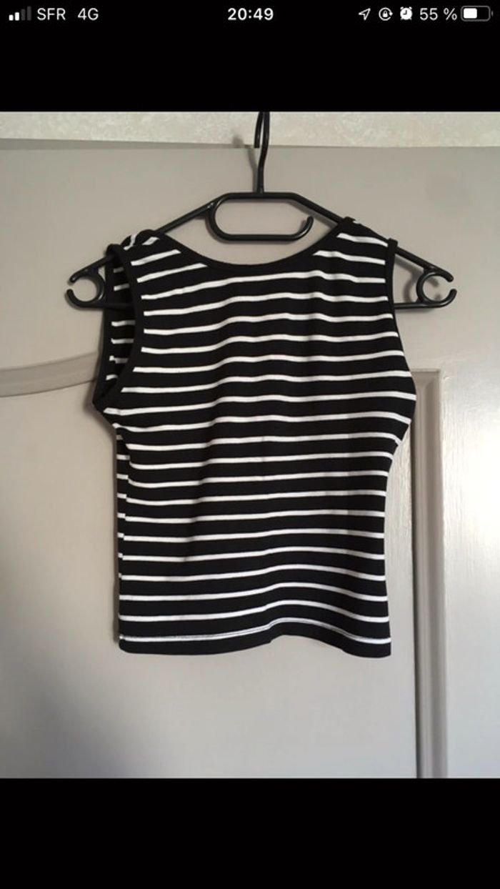 Débardeur court moulant noir et blanc rayé - photo numéro 3