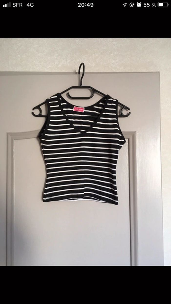 Débardeur court moulant noir et blanc rayé - photo numéro 1