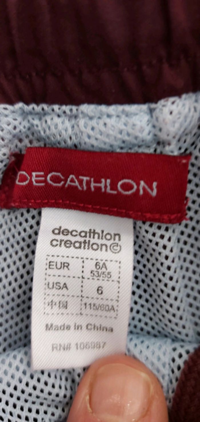 vend pantalon sport décathlon 6 ans couleur bordeau passant en bas pour serrer au niveau des chevilles