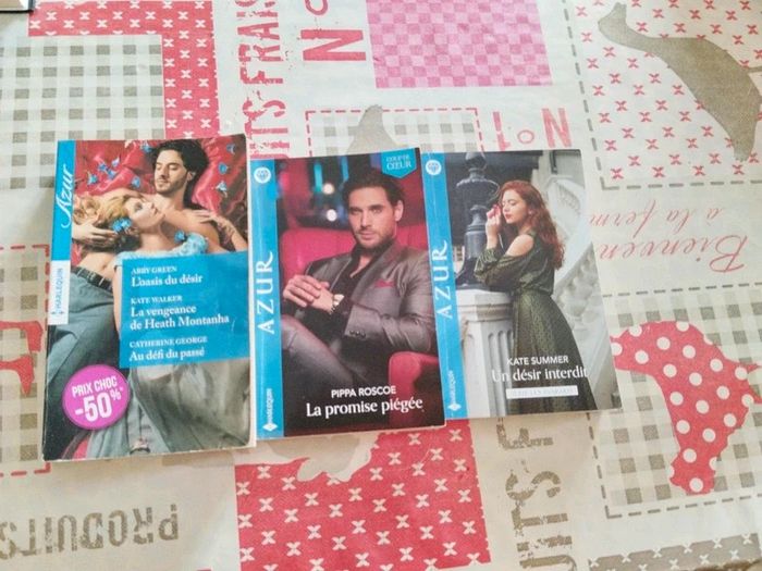 Azur L'oasis du désir La vengeance de heath montanha Au défi du passé La promise piégée Un désir interdit Bien regardé les photos il y a des écritures mais gêne en rien la lecture #strch_livreadulte