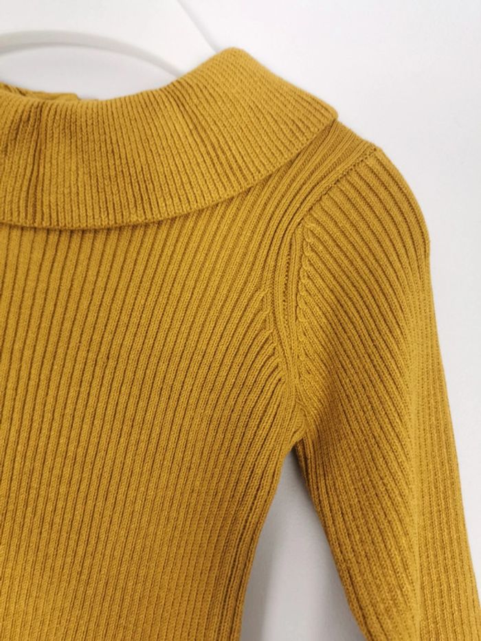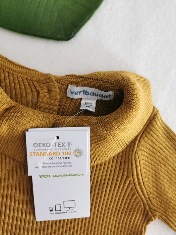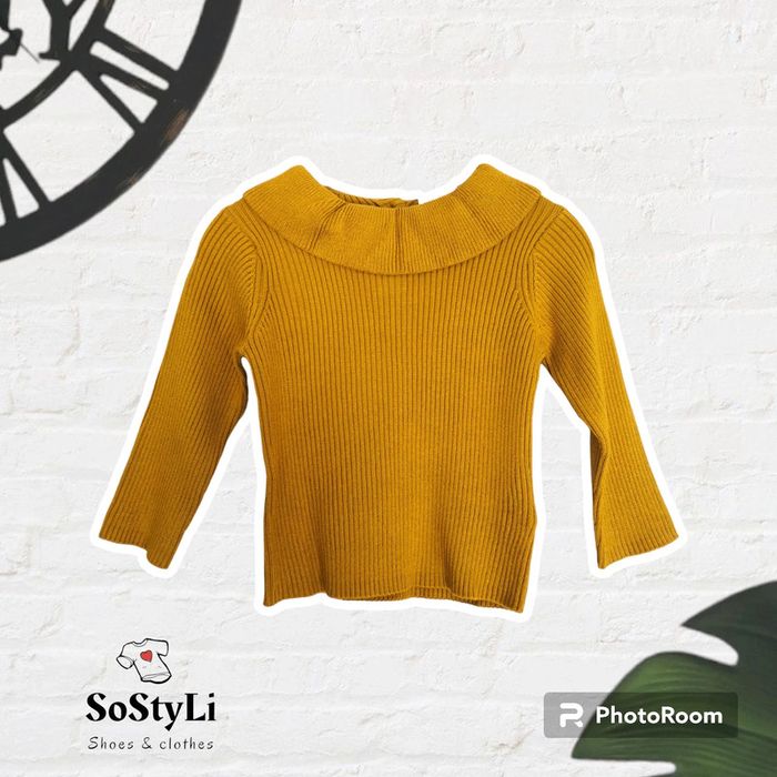 👧 ARTICLE NEUF AVEC ÉTIQUETTE 👧 Pull à Collerette 👧 Vertbaudet Taille 6 Mois - 67 cm • Matière: 70% viscose - 30% polyamide • Pull fin cotelé • Col rond souligné d'une collerette • Manches longues • Fermeture par 3 boutons dans le dos • Couleur: Bronze 🟡 / Moutarde 💰 Prix boutique: 17.99€ Parfait état 👌, avec étiquette🏷️, jamais porté #SoStyLiFilleTaille6Mois 💜