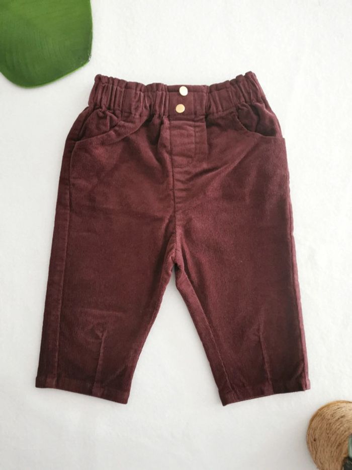Pantalon bordeaux en velours côtelé Vertbaudet 6 Mois - photo numéro 1