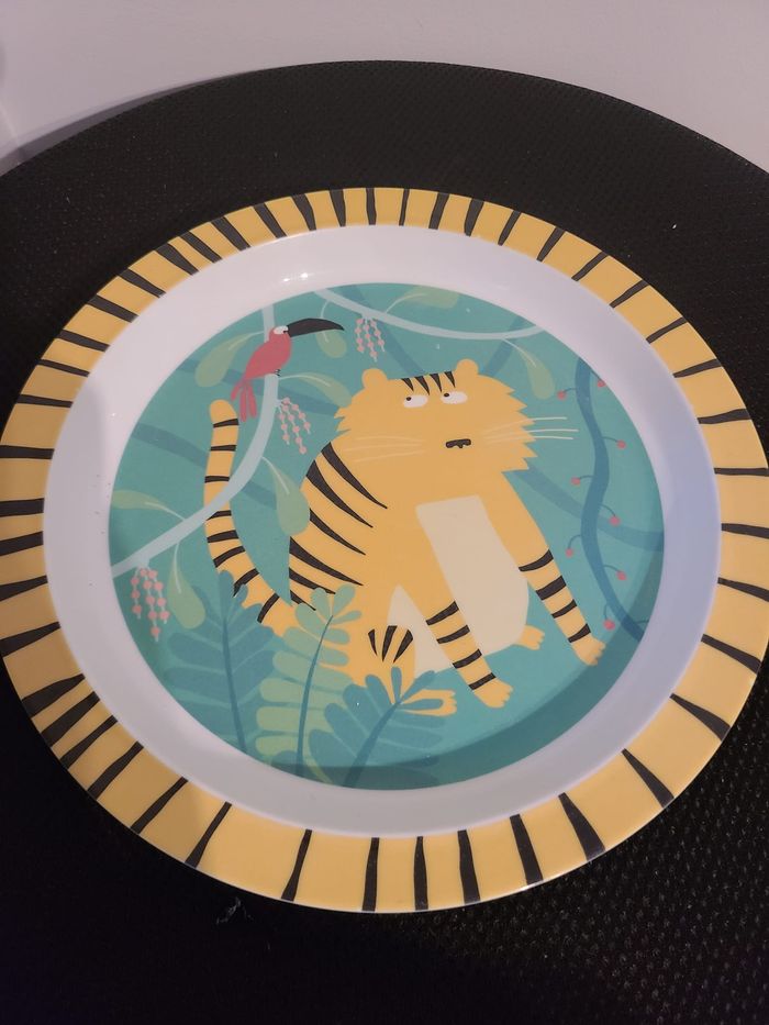Pour égayer les repas, voici une assiette en melamine de la collection "Jungle" de Petit Jour Paris. Assiette plate - Le Tigre