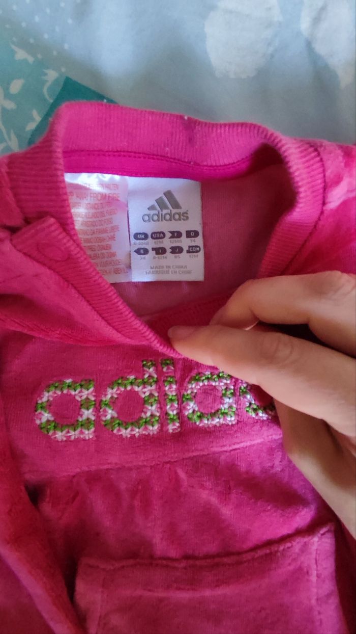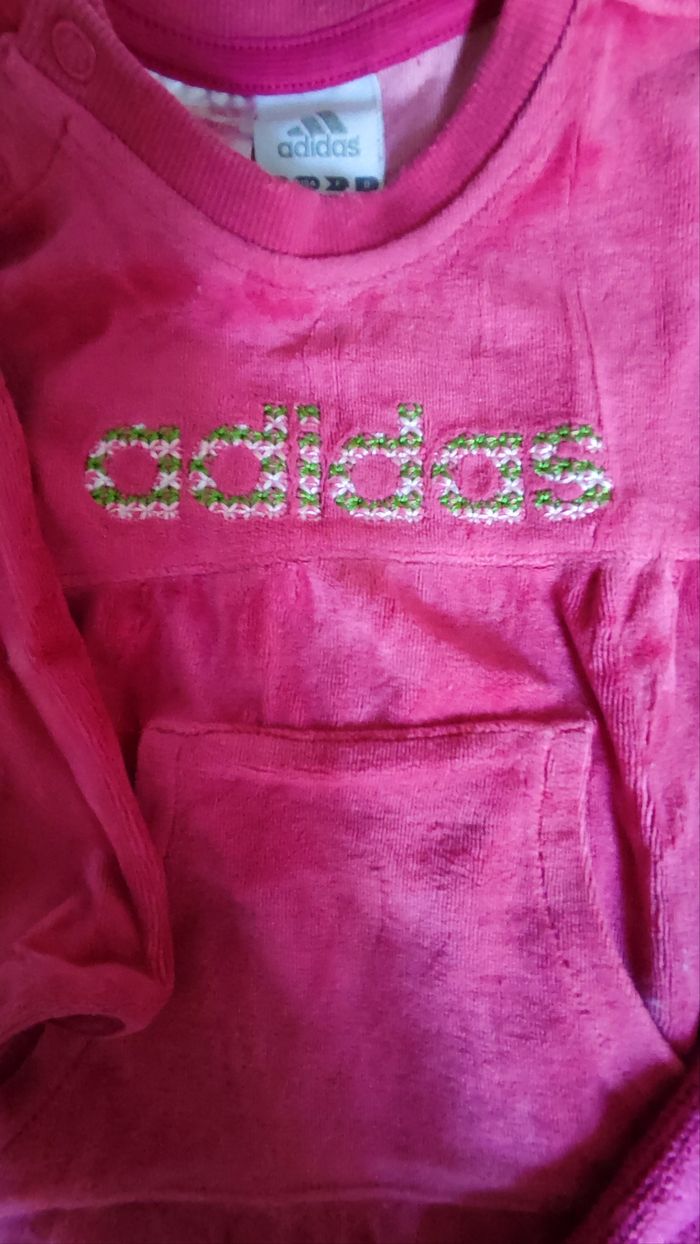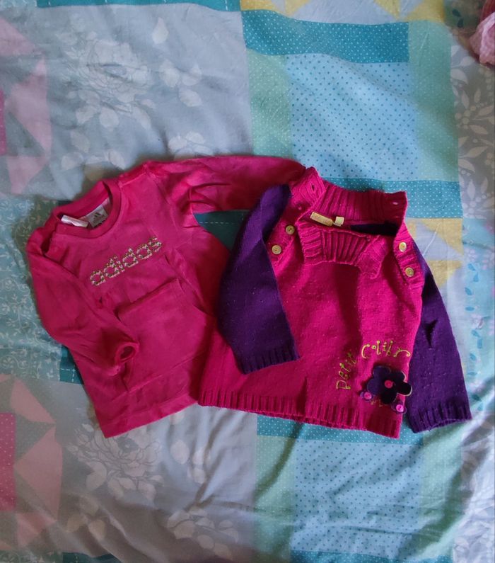 Lot de deux pulls pour fille. L'un de sport Adidas, l'autre de chez Petit Colibri (il peluche un peu).