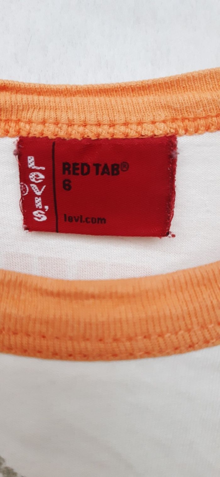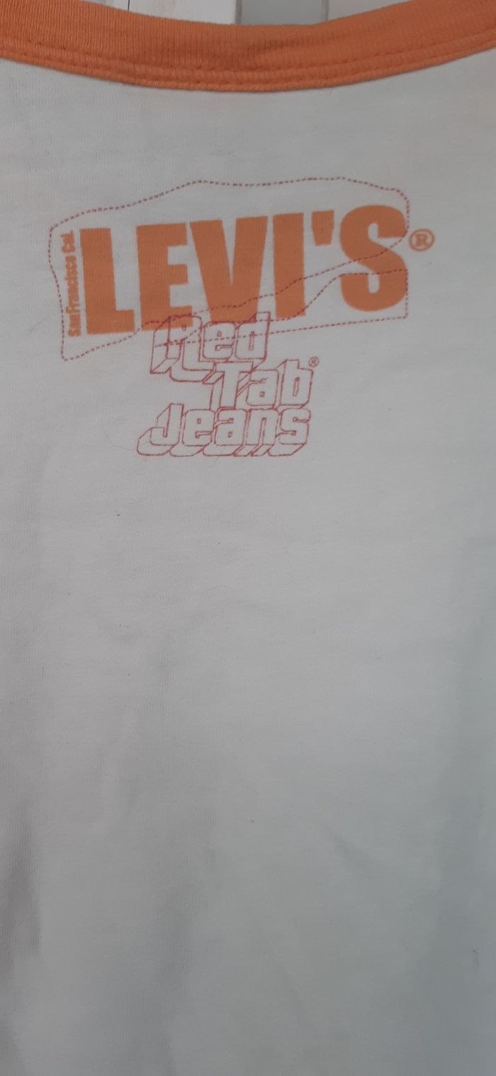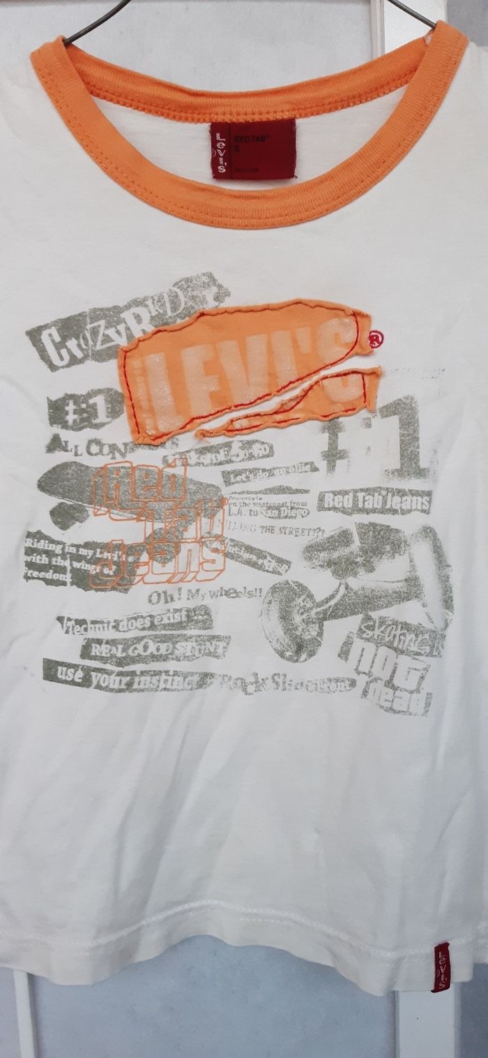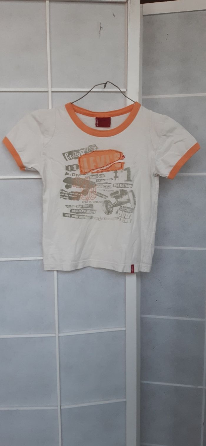 Tee-shirt levi's très bon état peu porté. 6 ans . 100% coton. Blanc orange en majorité.