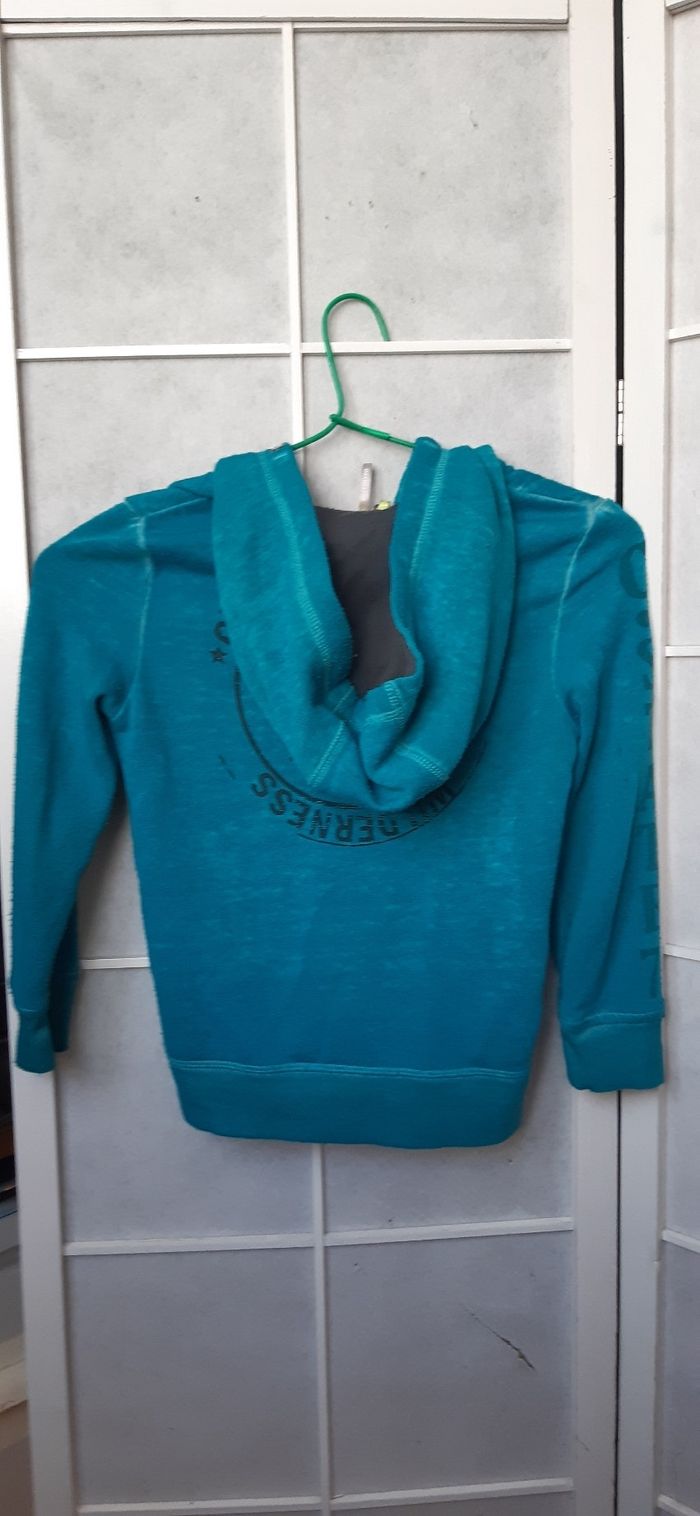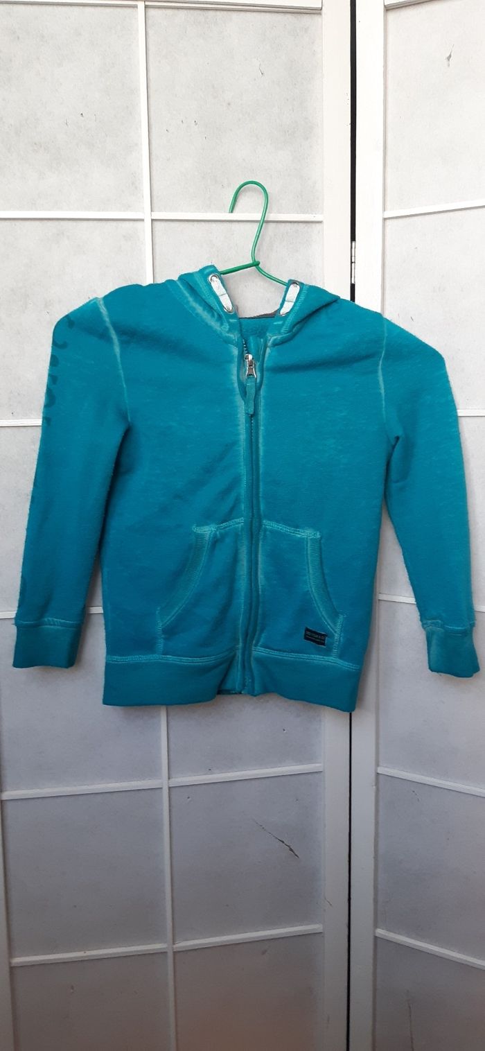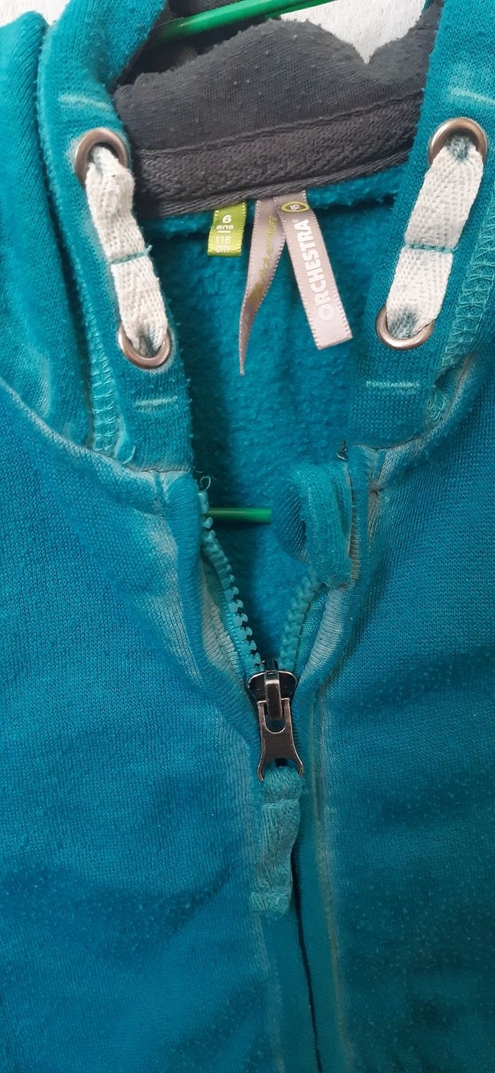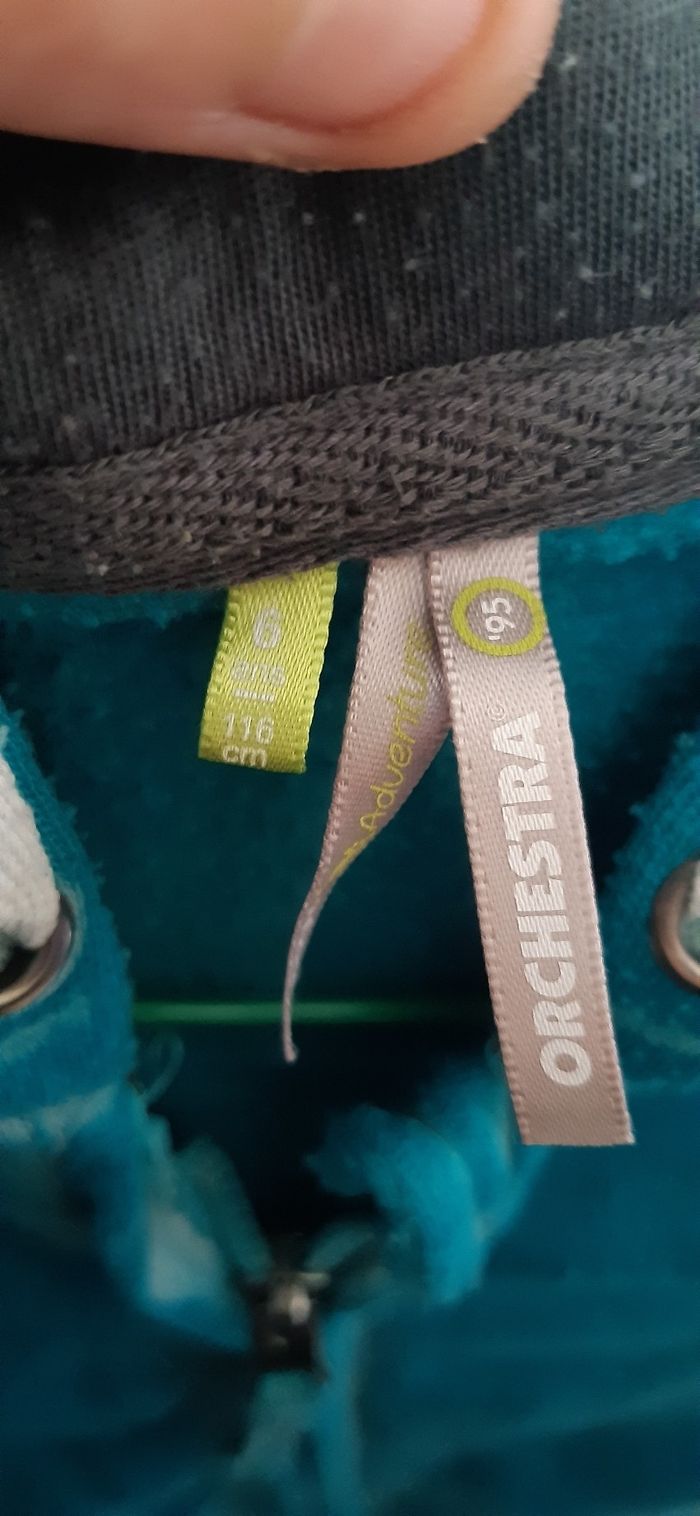 6ans 116cm. Orchestra. 62% polyester 38%coton Capuche. 2 poches. Fermeture ok. Peu porté.