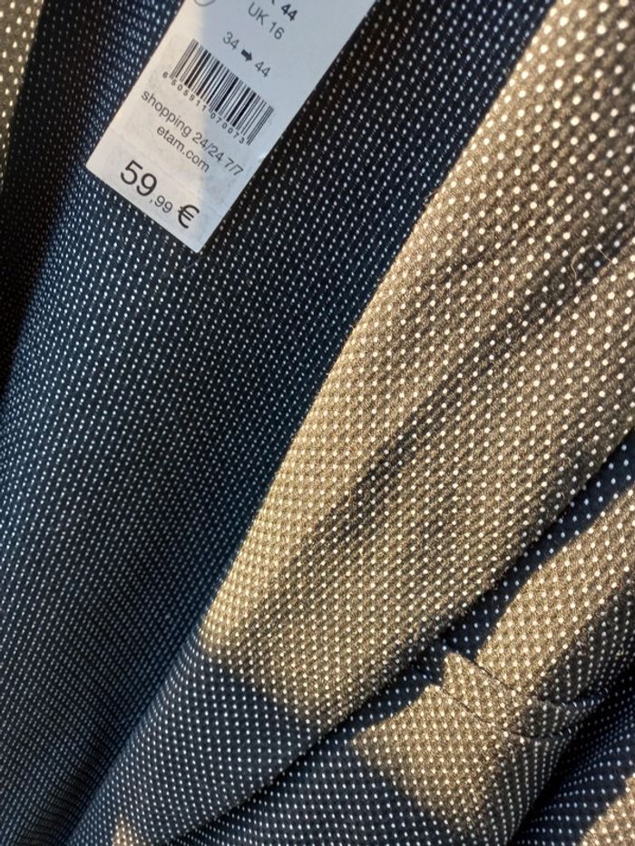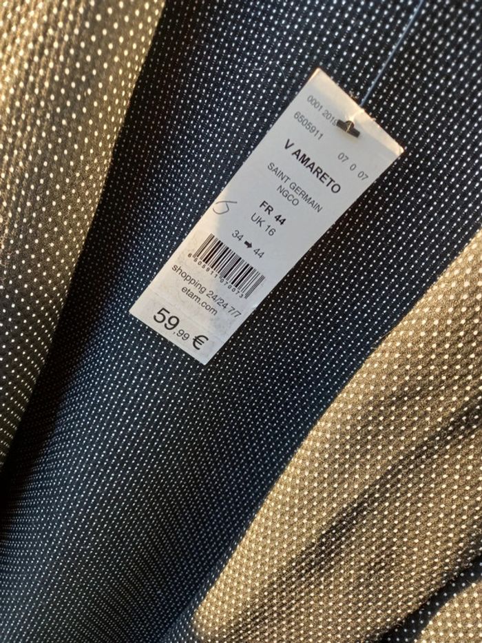#blazer #neufavecetiquette #taille44 #etam #grisfoncé #noir Taille inscrite 44 mais plutot 42 Il y avait une etiquette sur le prix pour cacher le prix