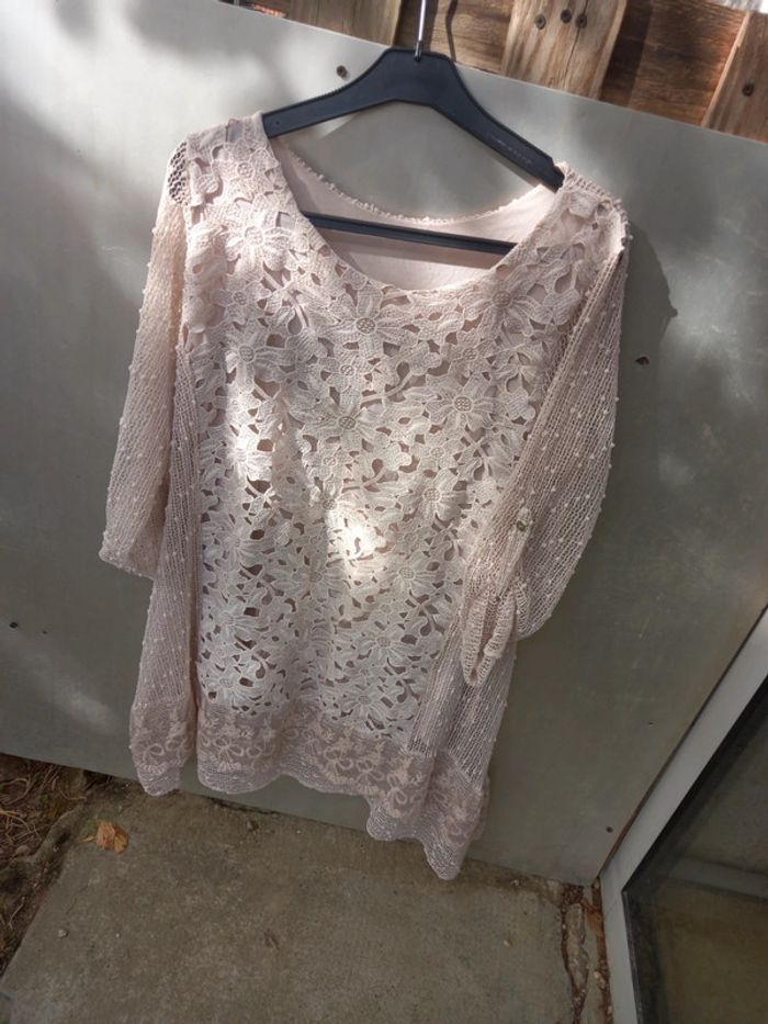#tunique #ajouré #bras #beige #originale #taille4244 #petit44 #tresbonetat #broderie #fleur
