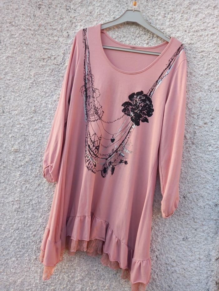 #robe #tunique #bonetat #rose #motif #originale #taille44 Etiquette manquante car genante voir photo