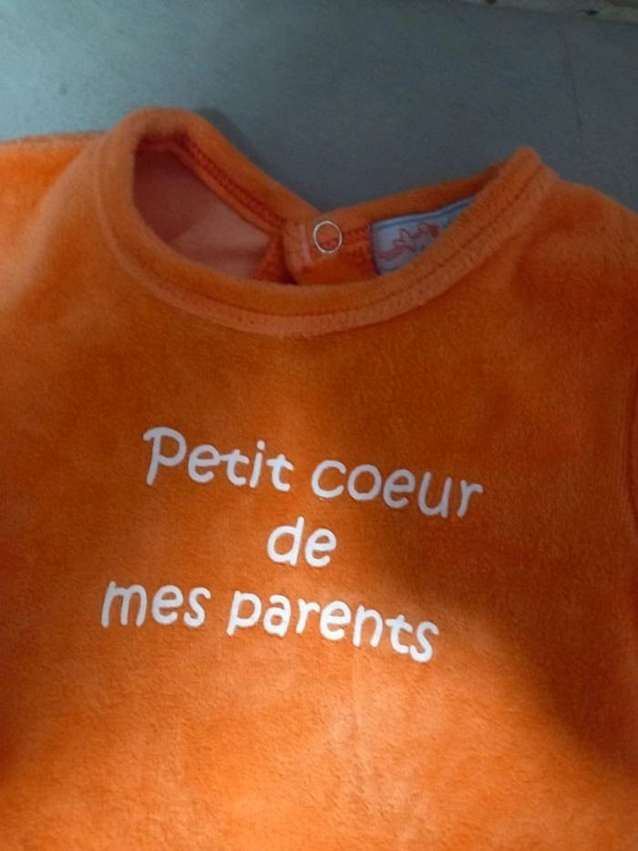 #pyjama #dorsbien #babygirl #bébéfille #3m #3mois #orange #message #inscription #mignone #tresbonetat #62cm