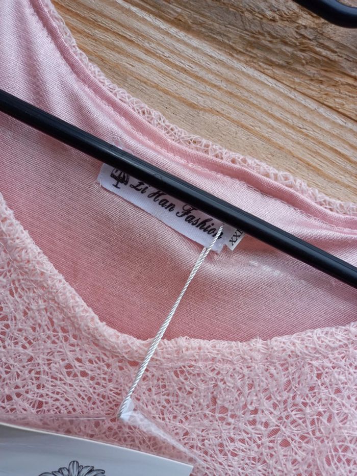 #blouse #dentelle #neuve #roseclair #originale #taillexxl #plutot4042 #voilage