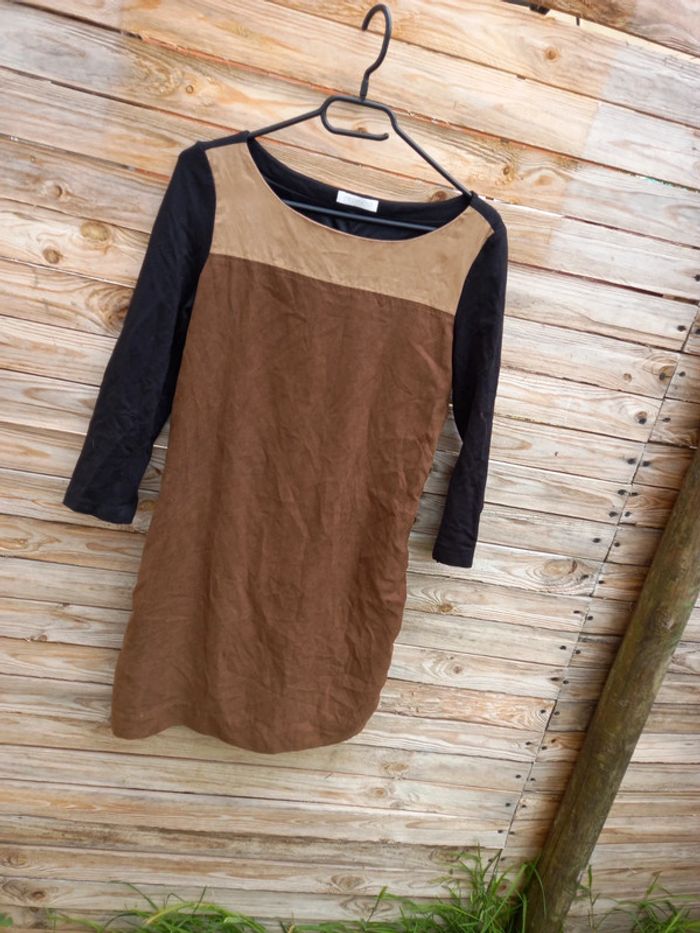 #robe #bimatiere #promod #velours #marronbeige #noir #taillem