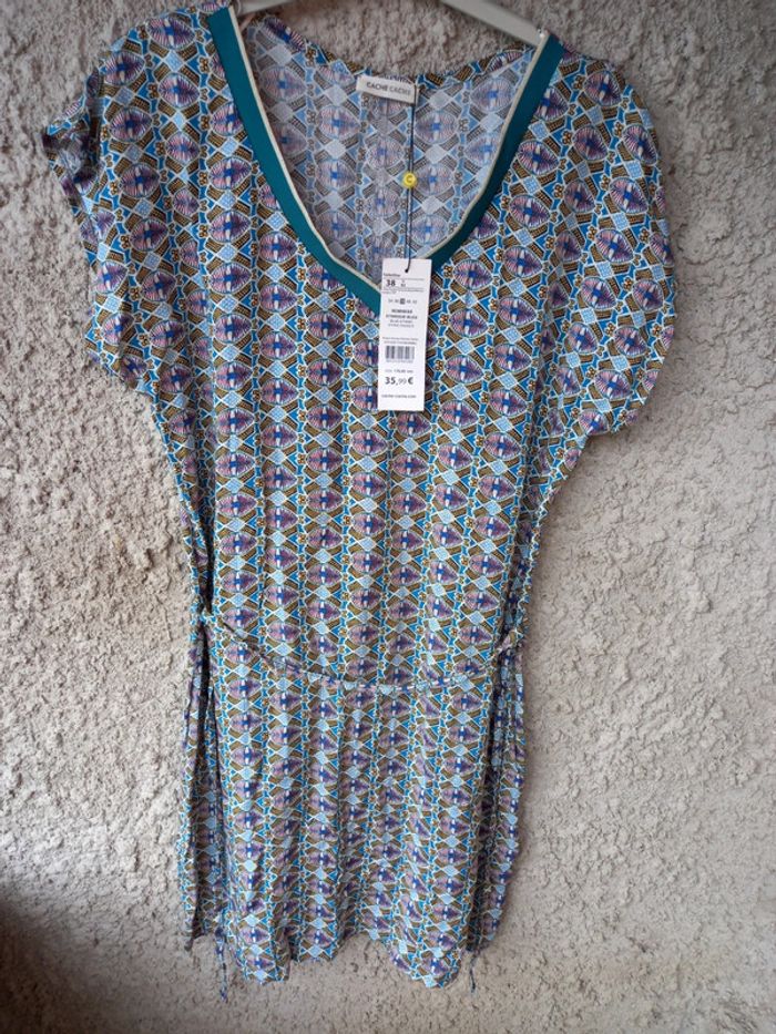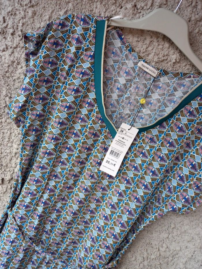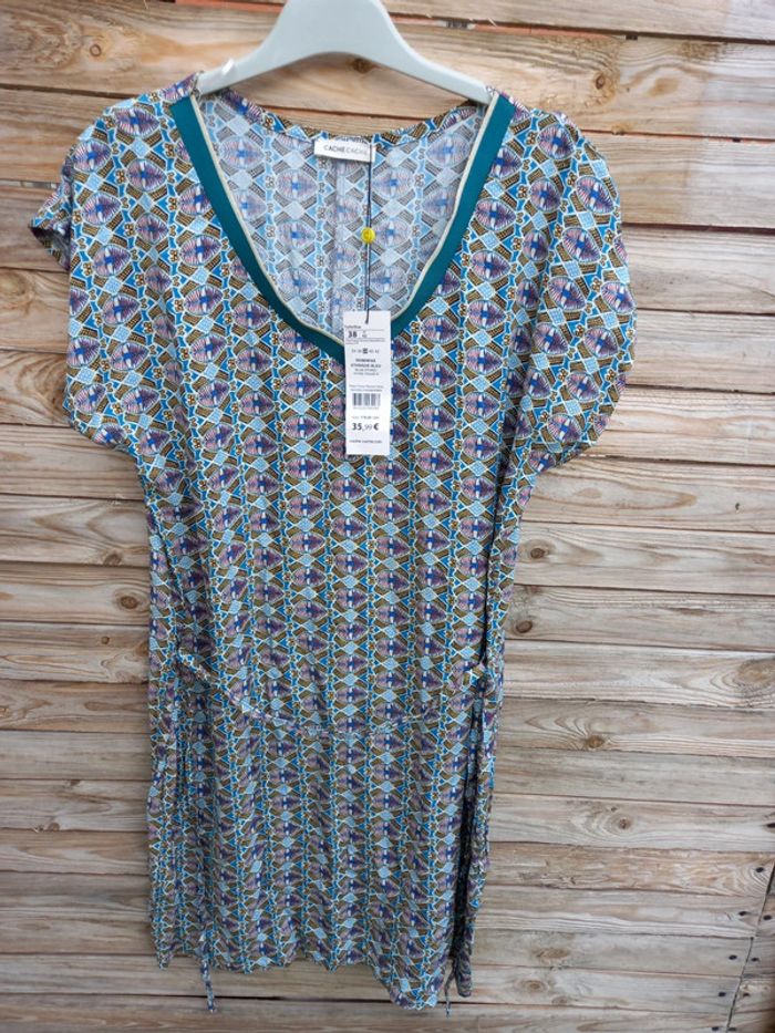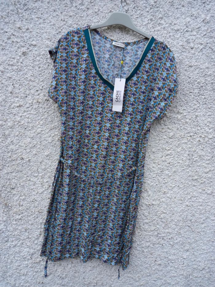 #robe #fluide #estivale #neuve #cachecache #neuveavecetiquette #motif #bleuvert #taillem