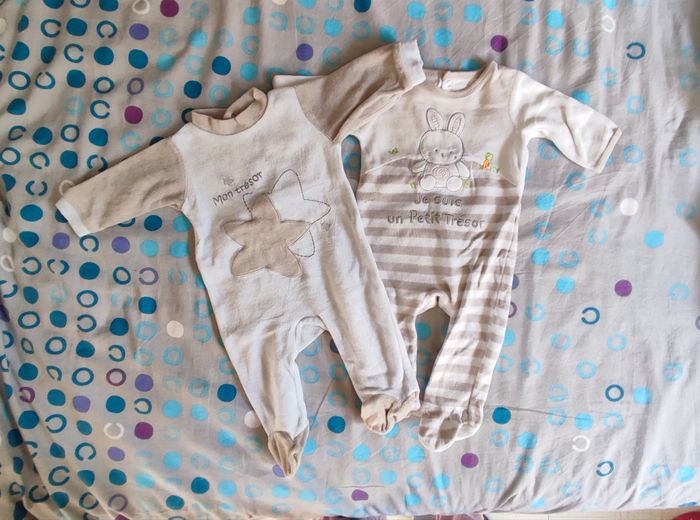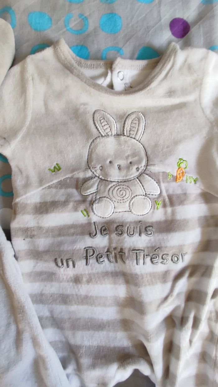 Lot de deux pyjamas en velours une pièce (Bébé 9 et Gémo). Très bon état.