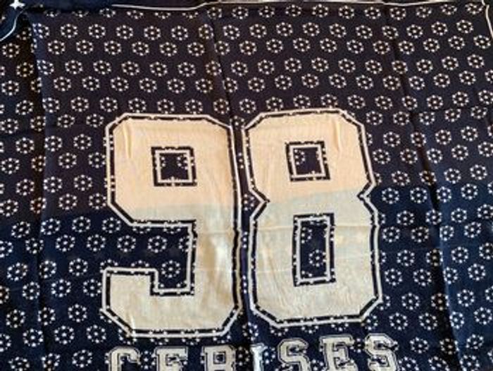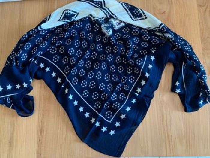 Foulard Le temps des cerises couleur marine. En excellent état.