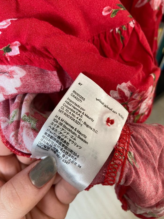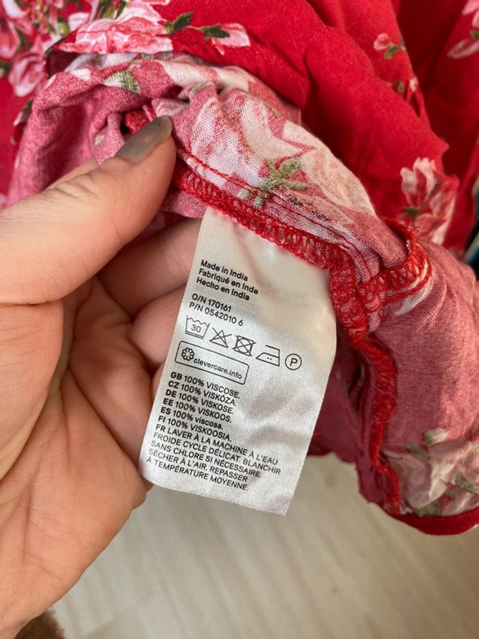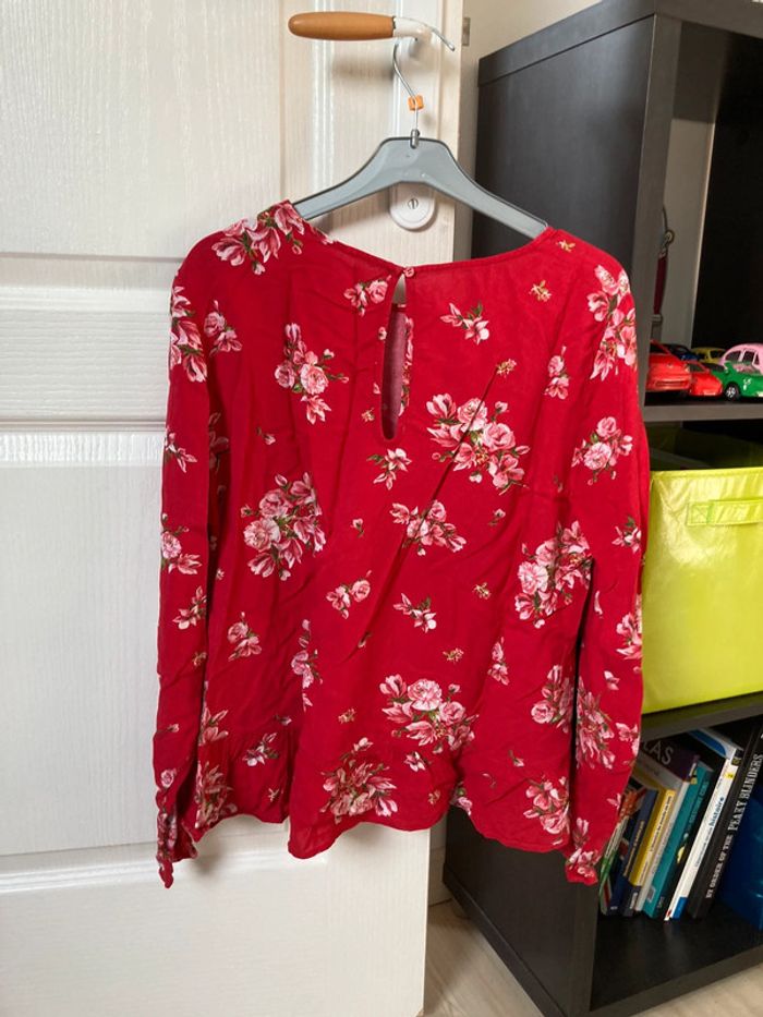 Blouse manches longues à volants rouge à fleurs H&M taille 40 En très bon état
