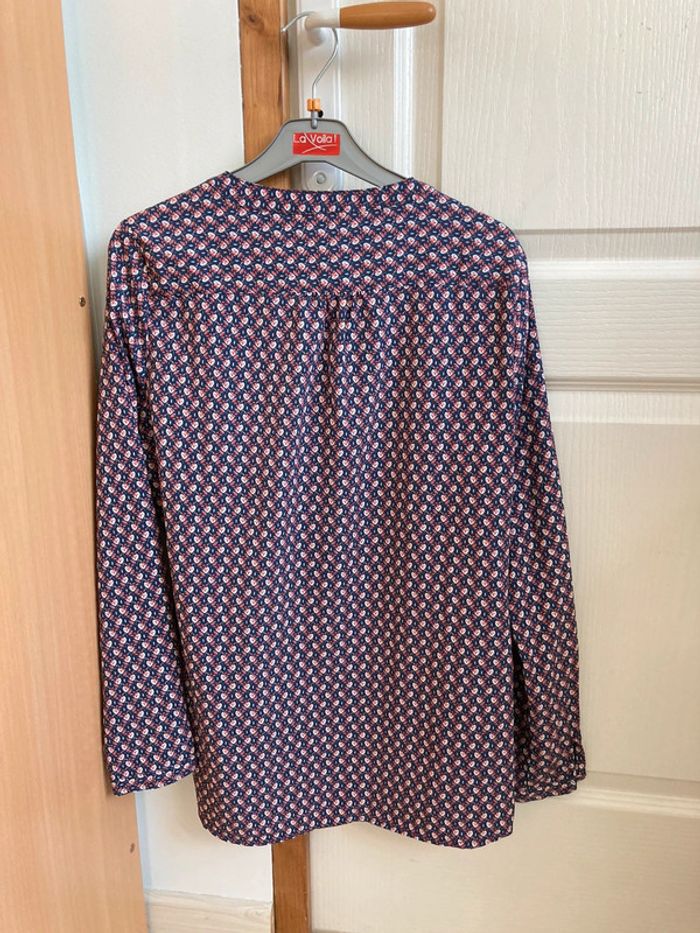 Blouse manches longues col V à motifs bleus et rouges - photo numéro 2