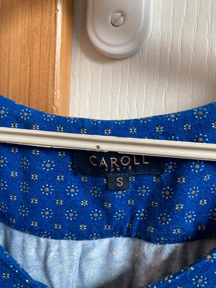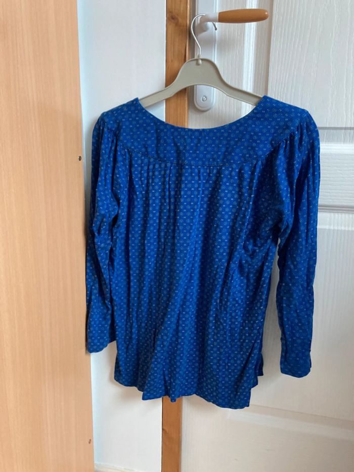 Blouse à manches longues bleue avec motifs blancs Caroll taille S En très bon état
