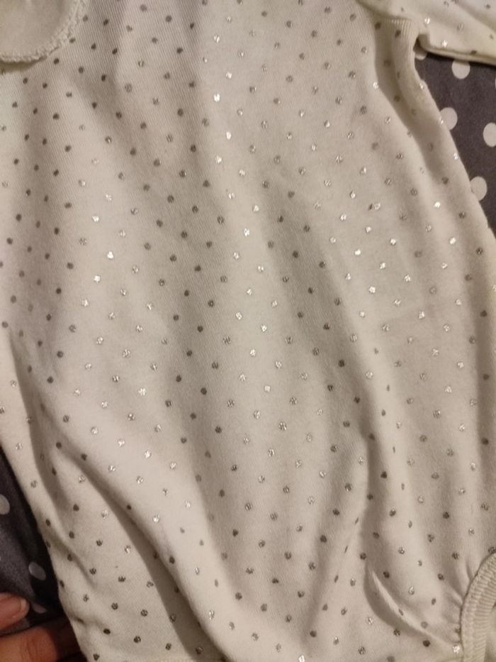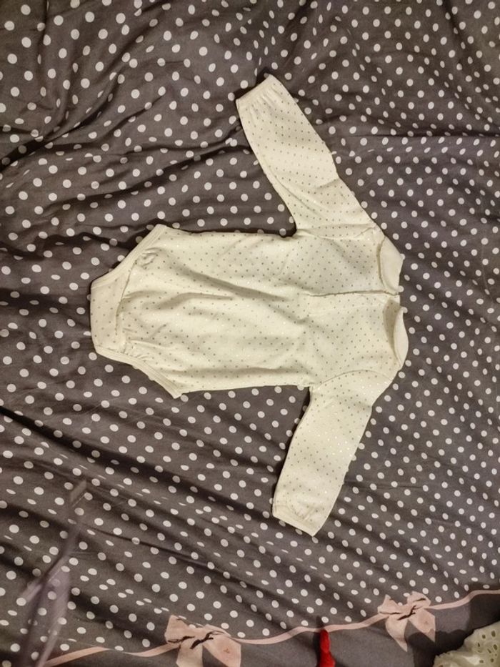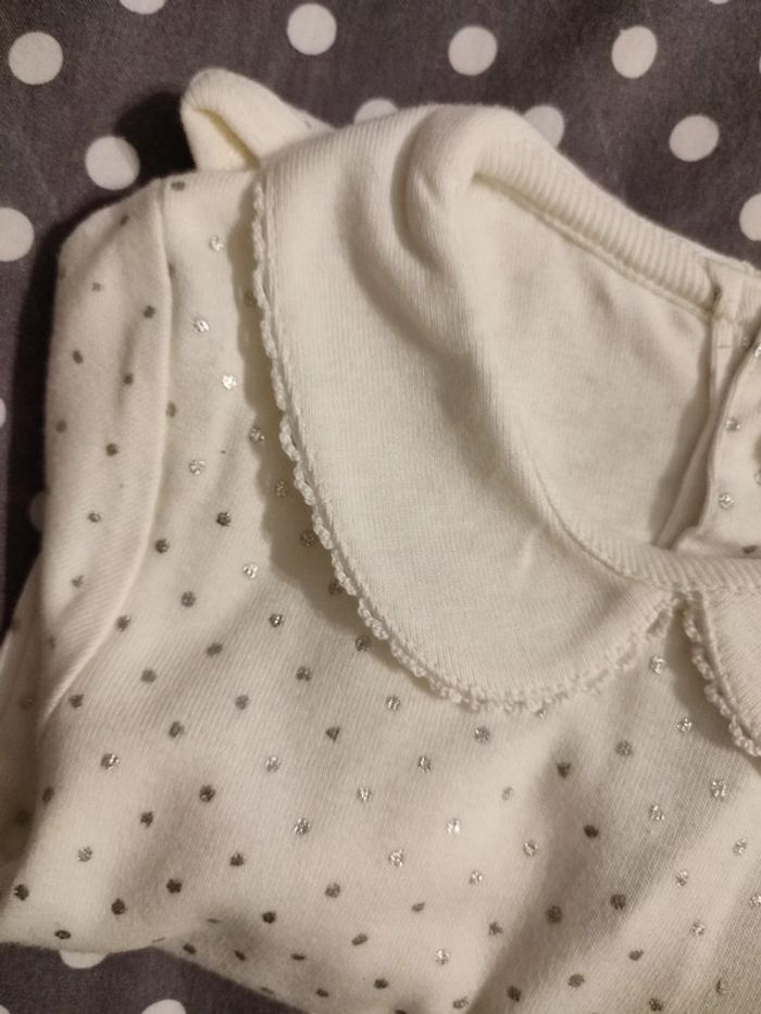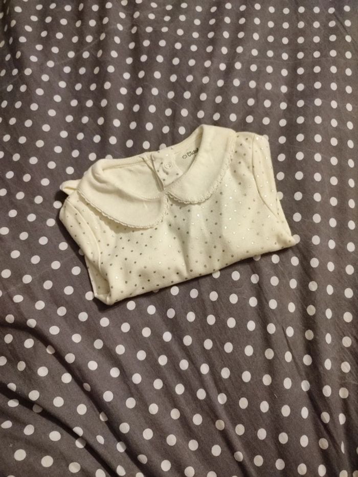 Bodie col claudine à pois argenté, taille 12 mois, marque Kiabi, 100% coton, neuf (2 identiques disponibles 6e pièces ou 10e les 2)