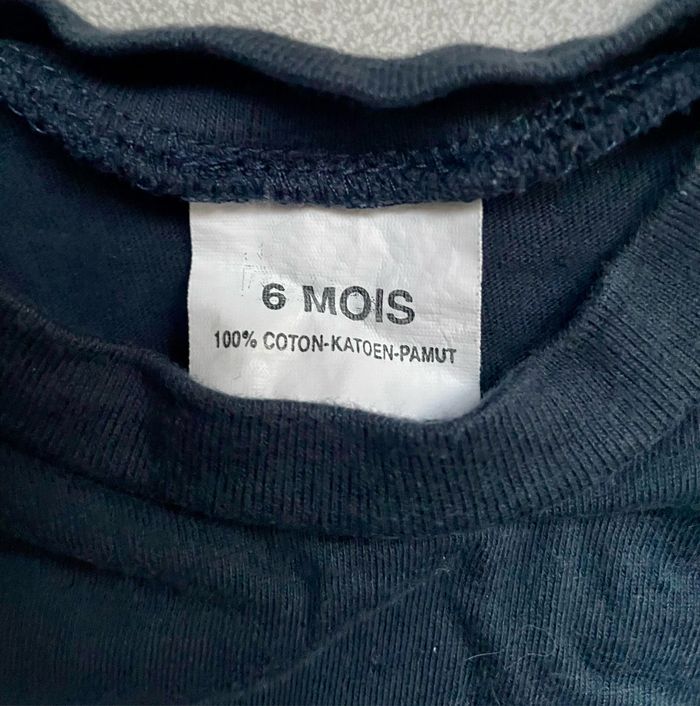 Tee shirt à manches longues Taille 6 mois Couleur bleu foncée Petites traces d’utilisation Occasion, bon état