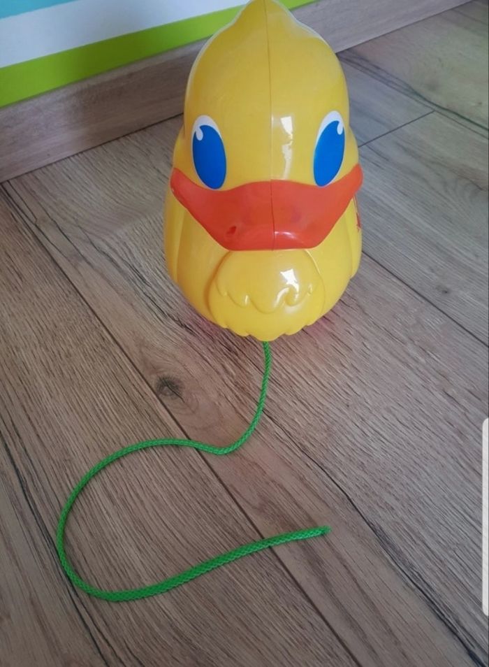 A vendre canard à tirer en très bon état avec 3 oeufs qui tombent quand il avance. Les oeufs font du bruit comme les hochets quand on les secoue.