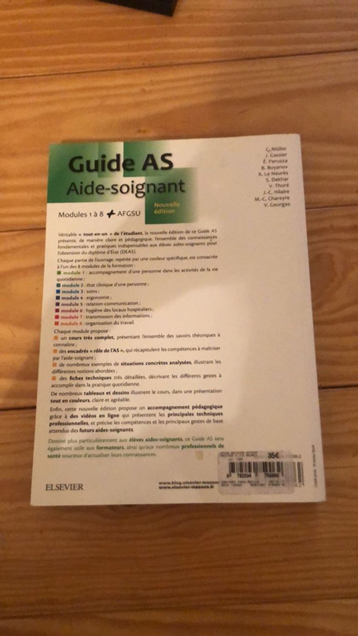guide AS aide soignant modules 1 à 8 et afgsu niveau 2 livre vraiment très complet, utile et très pratique pour l’école d’AS acheter en 2019 mais toujours d’actualité, il est en vente toujours actuellement au prix de 35€