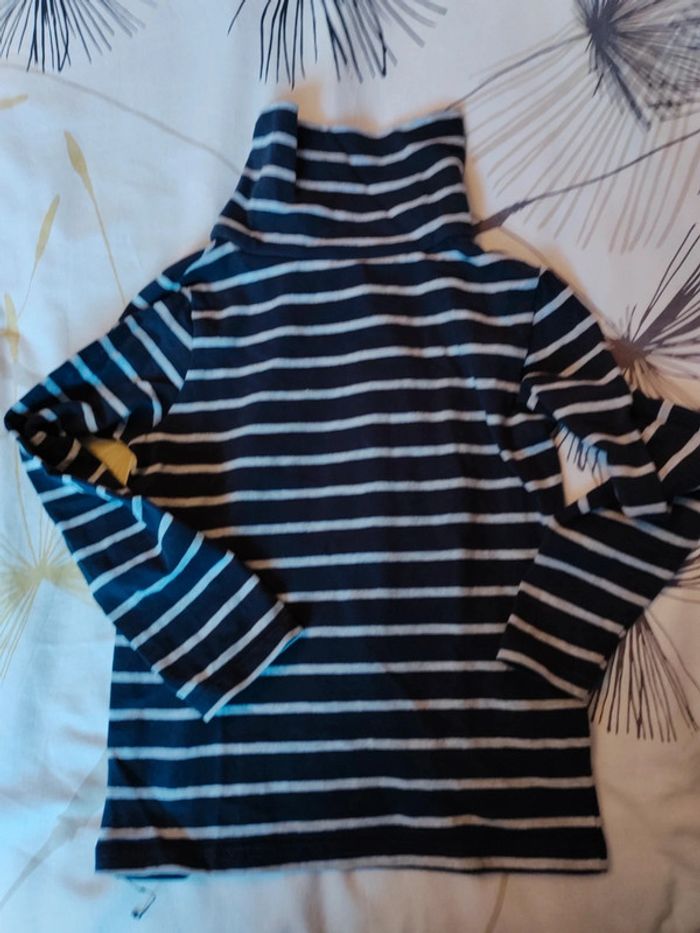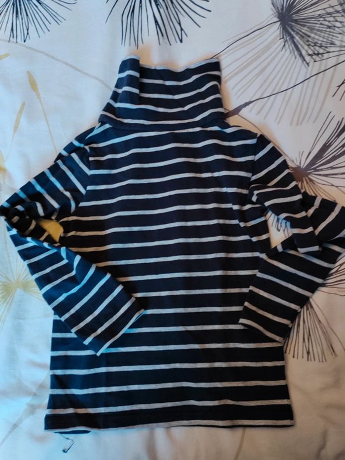 Je vends un sous pull à col roulé de couleur bleu marine et gris en 3 ans de chez kiabi en très bon état