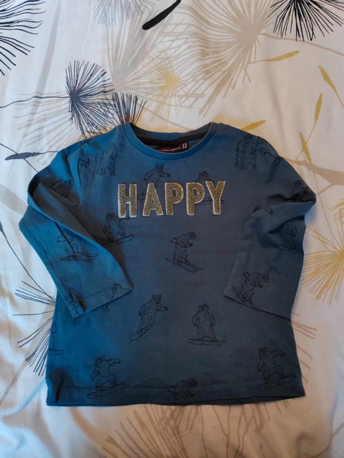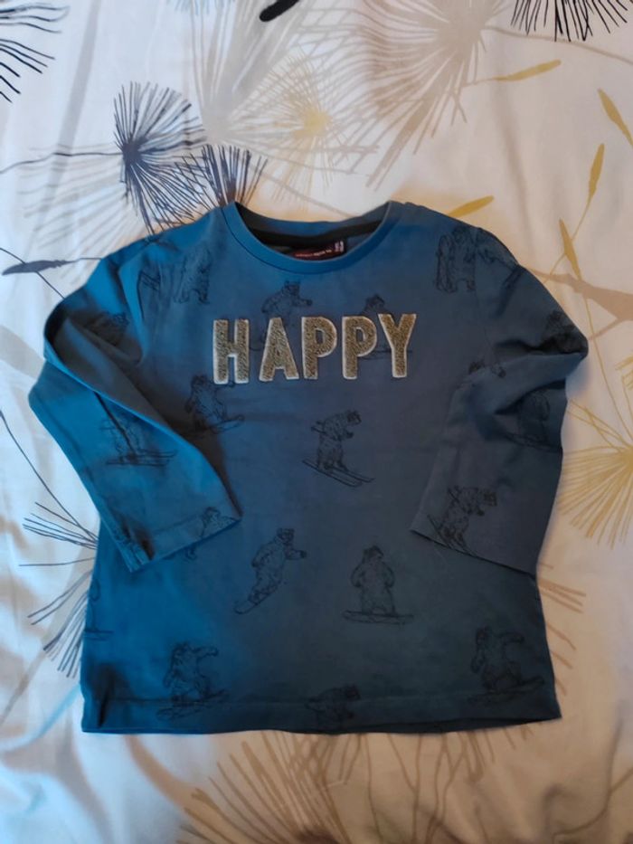 Je vends un tee-shirt manche longue en 3ans de chez sergent major en très bon état de couleur bleu.