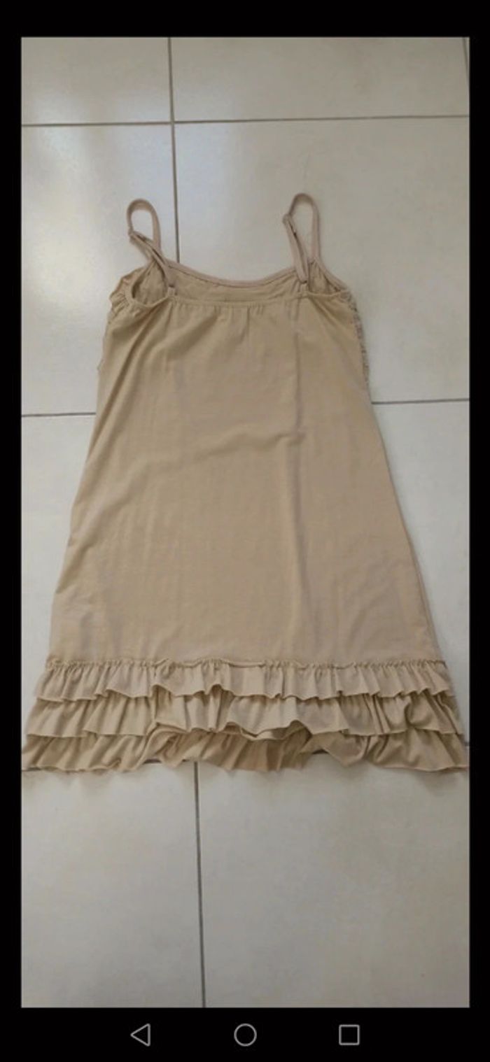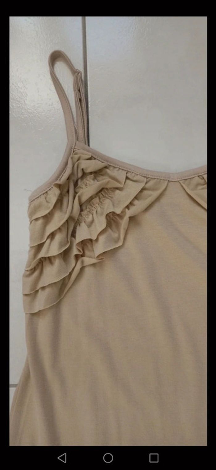 #clemhdu83_tuniquetailleunique Beige. Bretelles réglables. Volants. Portee mais en bon état, petites bouloches, voir dernière photo #mollybracken #tuniquemollybracken