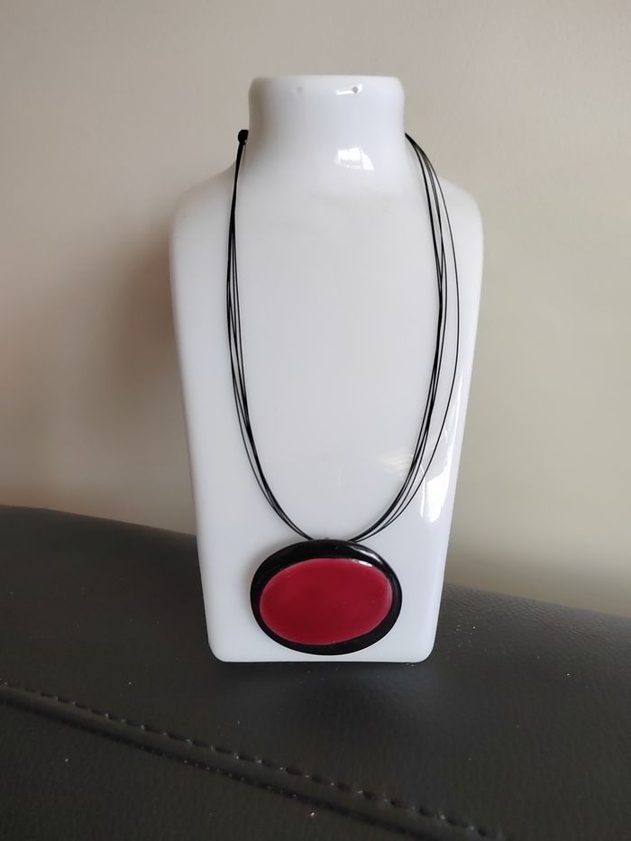 Superbe collier pendentif en metal peint