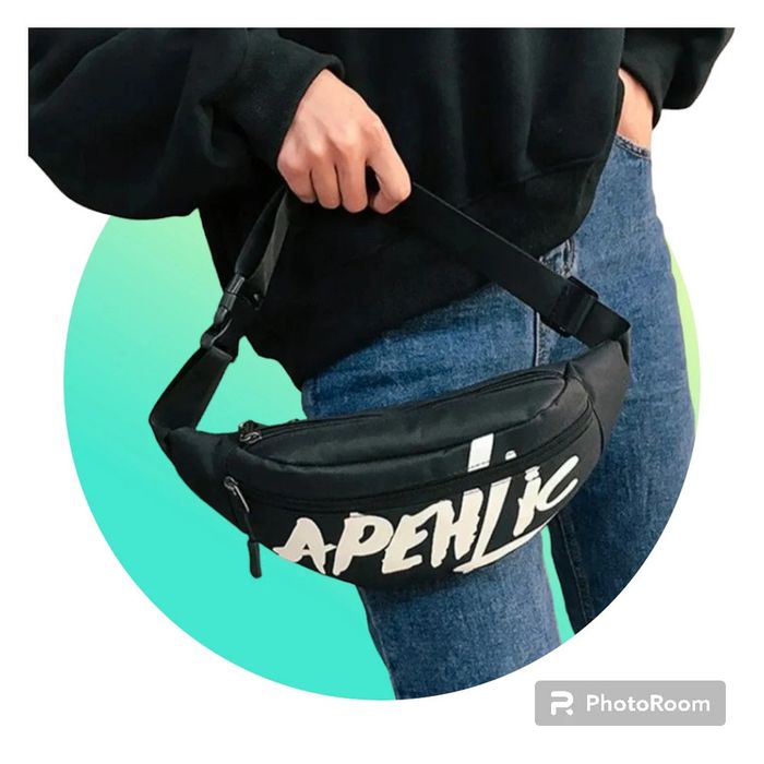 Sac banane noir a bandoulière Fermeture éclair Deux poches avant et une petite poche derrière Bandoulière réglable Mesures 33x15 CMS Neuf sous blister. Jamais utilisé