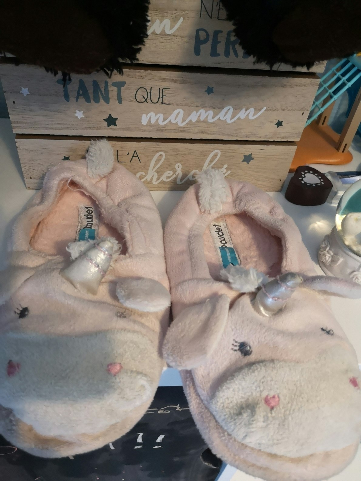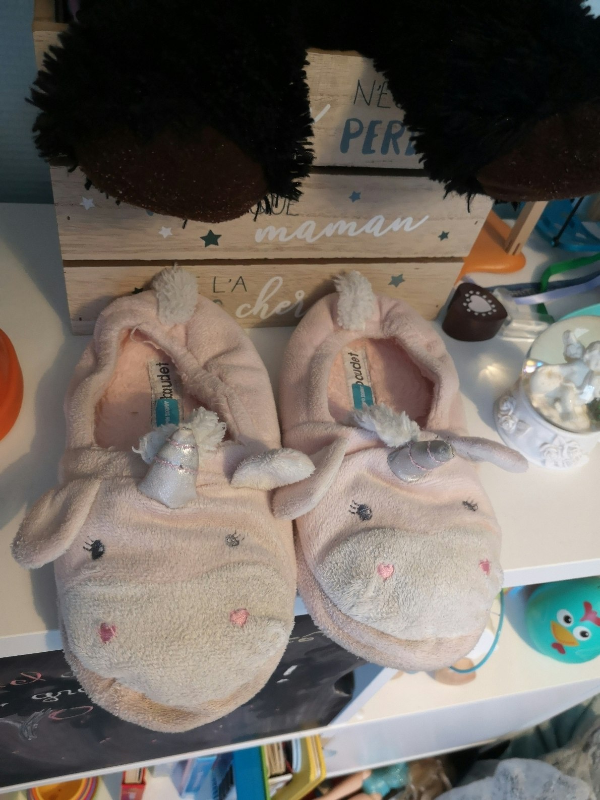 Chaussons Licorne verbaudet rose et argent pointure 32. Bon état