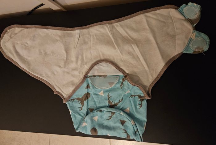 Utilisée 1 fois seulement. TISSUS CONFORTABLES - Nos couverture d'emmaillotage pour bébé fabriqué en 100 % coton jersey, il est perméable à l'air, chaud et sain. Idéal pour un sommeil profond. Nos produits ont été certifiés par Oeko-Tex standard 100, ils sont sans danger pour votre bébé Petite taille : 75 cm x 50 cm, convient pour les bébés de 3,2 à 6,4 kg, de 0 à 3 mois. MEILLEUR SOMMEIL - Elle est fabriquée dans un tissu doux et résistant, qui s'adapte parfaitement au corps du bébé, lui procurant un sentiment de sécurité et de protection. Il empêche efficacement votre bébé de faire des gestes brusques qui peuvent le réveiller. Permet de garder le bébé dans une position de sommeil sûre, est un excellent choix pour les parents qui recherchent un moyen confortable et sûr de transporter leur nouveau-né RÉGLABLE & FACILE à UTILISER - Côtés réglables pour grandir avec le bébé. Lorsque vous avez besoin de changer la couche, il suffit d'ouvrir la poche au niveau des jambes. Emmaillotage simple en 3 étapes pour rendre facile. Même de nouveaux parents peuvent l'utiliser facilement FACILE à NETTOYER - Notre gigoteuse emmaillotage bebe est lavable en machine. Elle est facile à laver et à entretenir, ce qui en fait un choix pratique et commode pour les parents occupés.