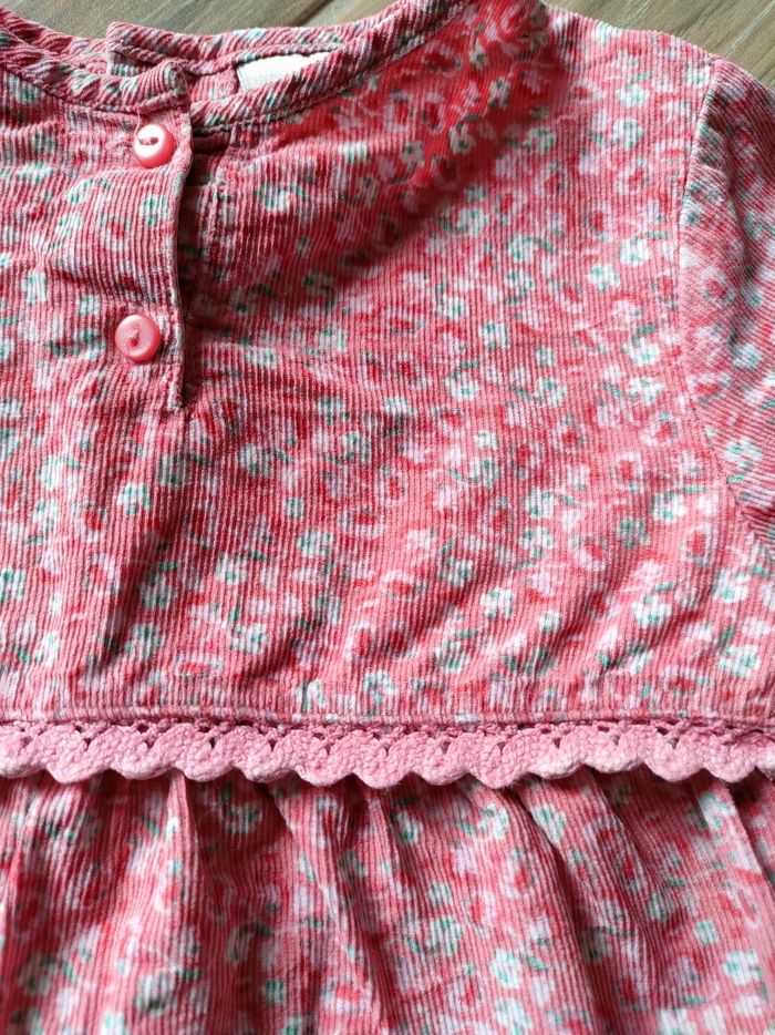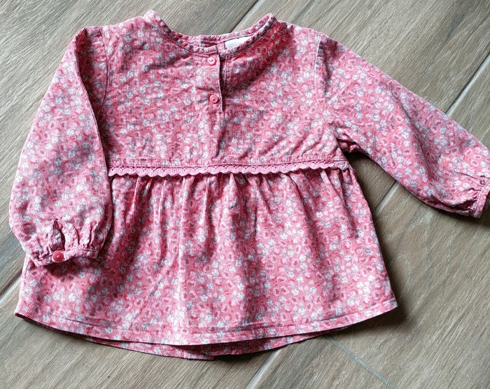Blouse Kiabi 18 mois velours avec boutons (le dos s'ouvre entièrement ce qui est pratique) Très bon état juste le rose qui est un peu fané sur la broderie