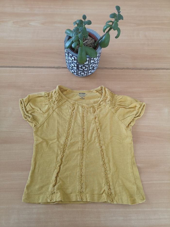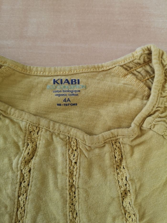 ° 4 ans ° Kiabi ° Haut manches courtes ° Couleur jaune moutarde ° Très bon état