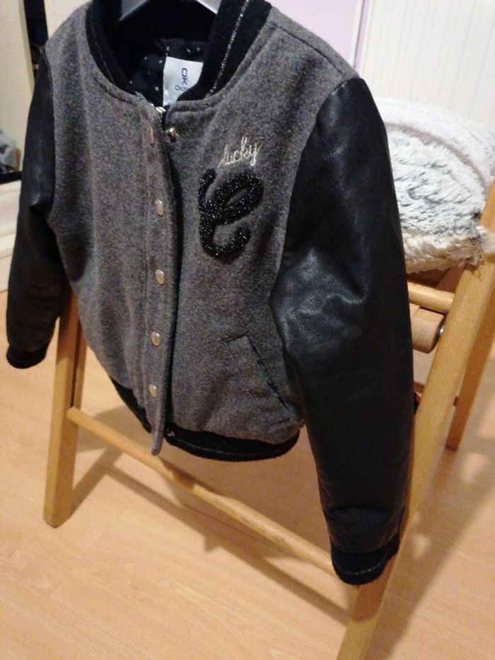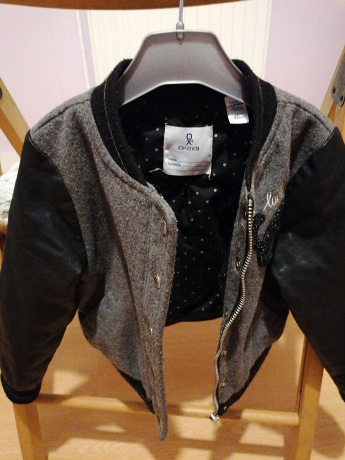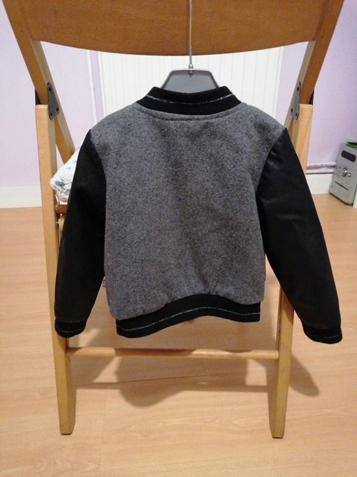 Veste grise et noir Manches en simili cuir Fermeture + boutons pression Façon bombers ou teddy 3ans #Cecilicia_fille_3ans #gentlevinties