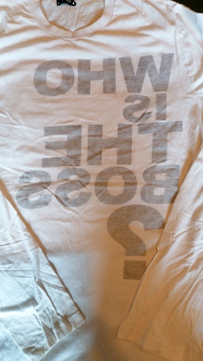 T-shirt large manches longues Inscription à l envers "who is the boss?" Taille S #Cecilicia_homme
