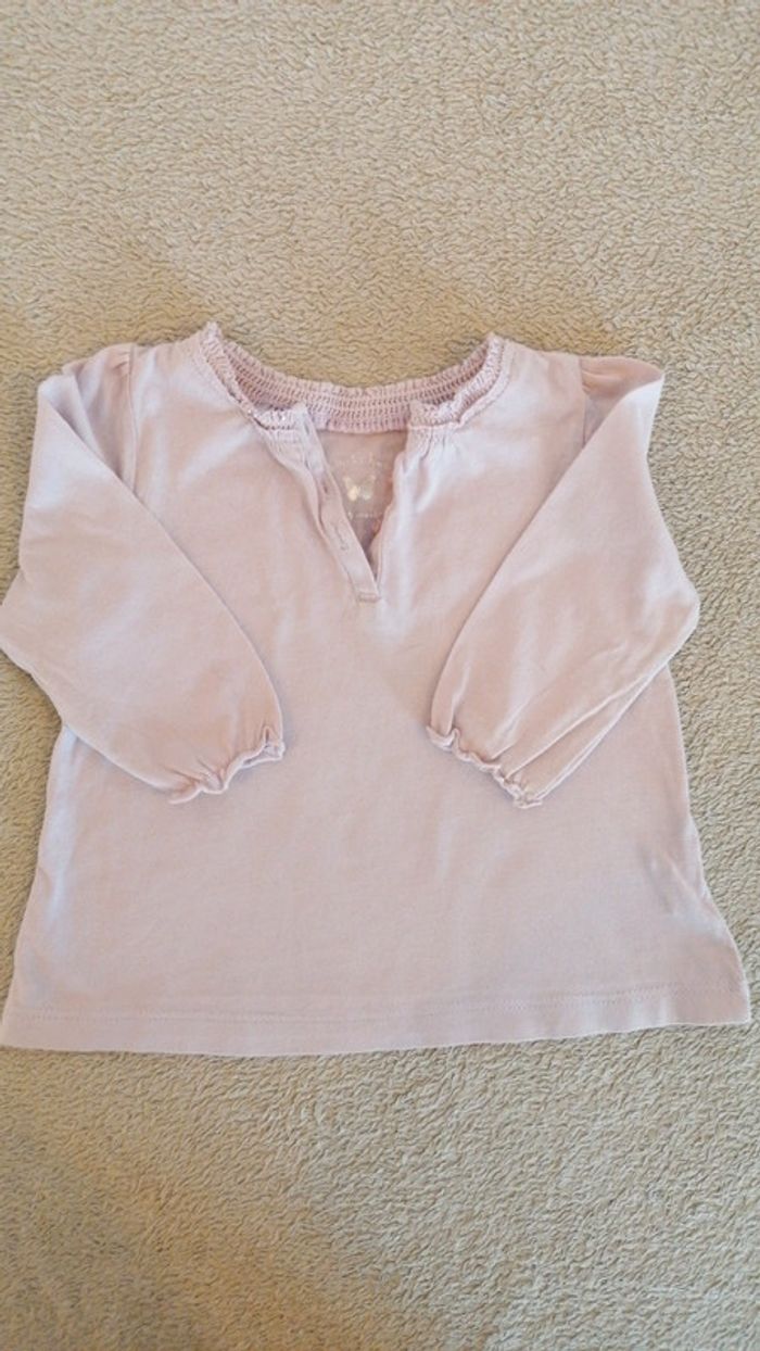 T-shirt manches longues rose poudrée bout'chou 9 mois - photo numéro 1