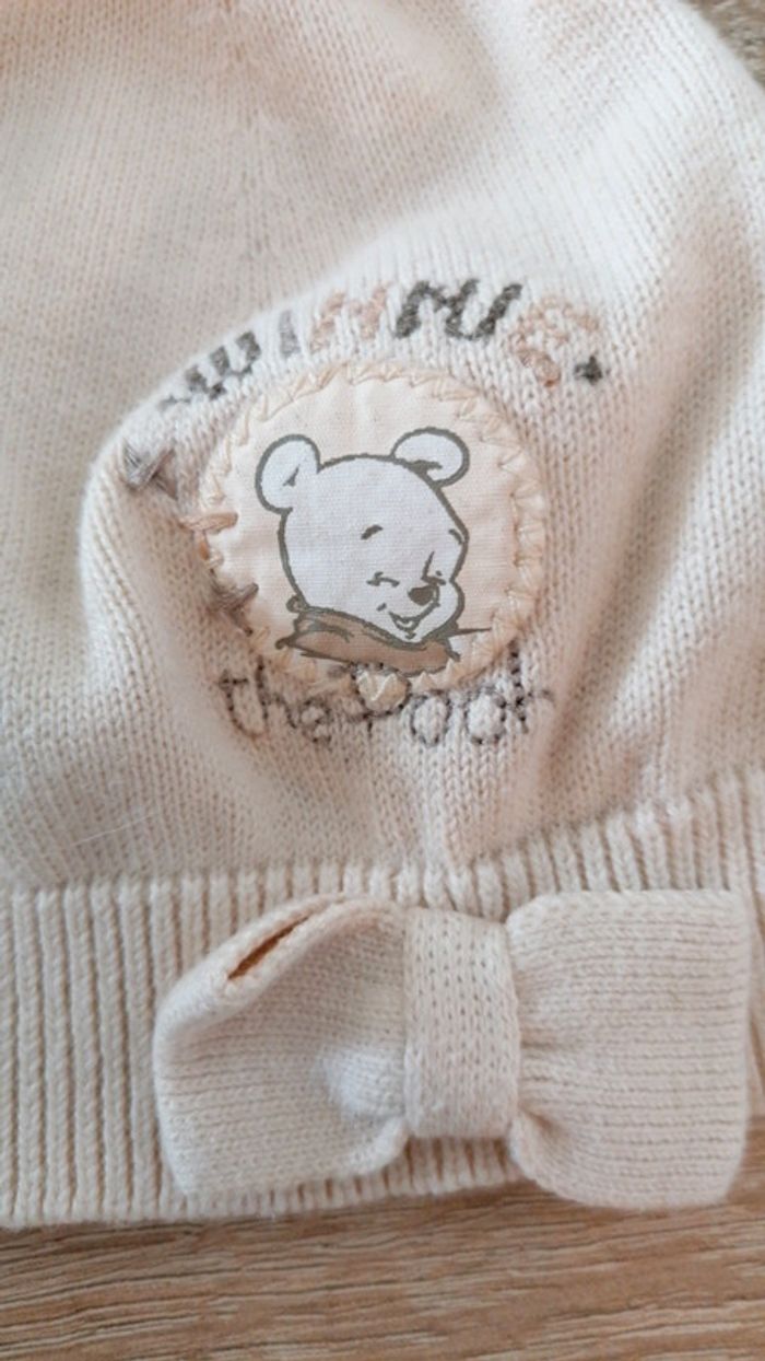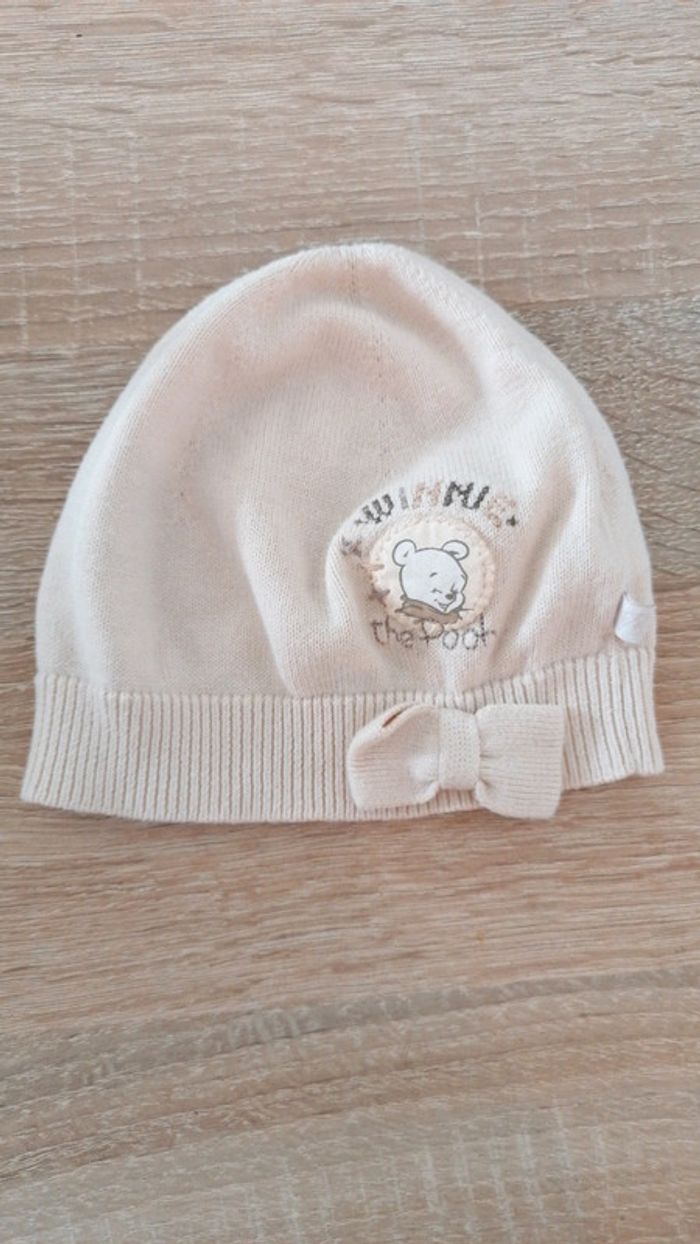 Bonnet couleur crème Petit nœud et motif winnie Disney Taille : 1 mois #Cecilicia_fille_1mois #bonnetbebe #bébéfille