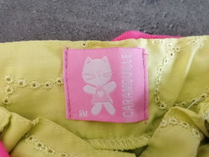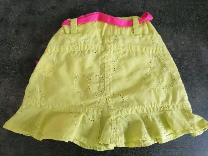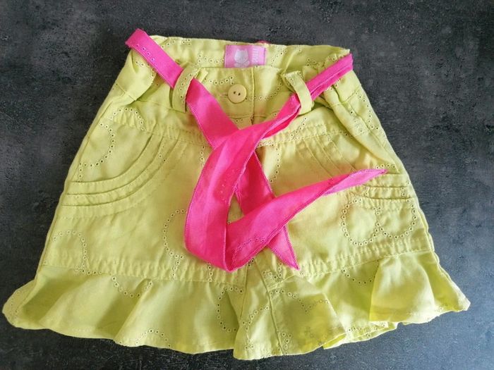 Jupe légère verte avec sa ceinture rose #Cecilicia_fille_3/6 mois