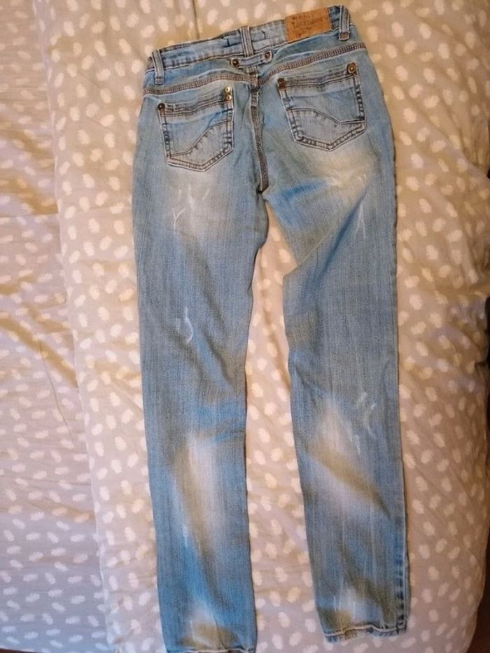 Jean bleu légèrement délavé, porté plusieurs fois, légèrement déchiré au dessus de la poche arrière droite #Cecilicia_femme