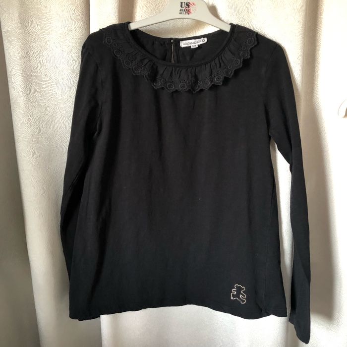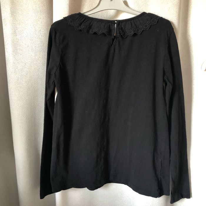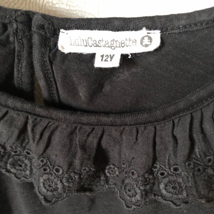 T-shirt noir manches longues col froncé en broderie anglaise Taille 12 ans Lulu castagnette
