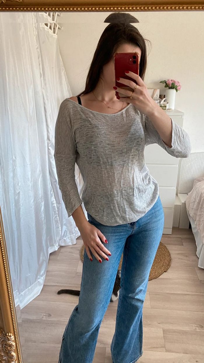 Haut manche 3/4 gris ajourée #mojito1Taille36